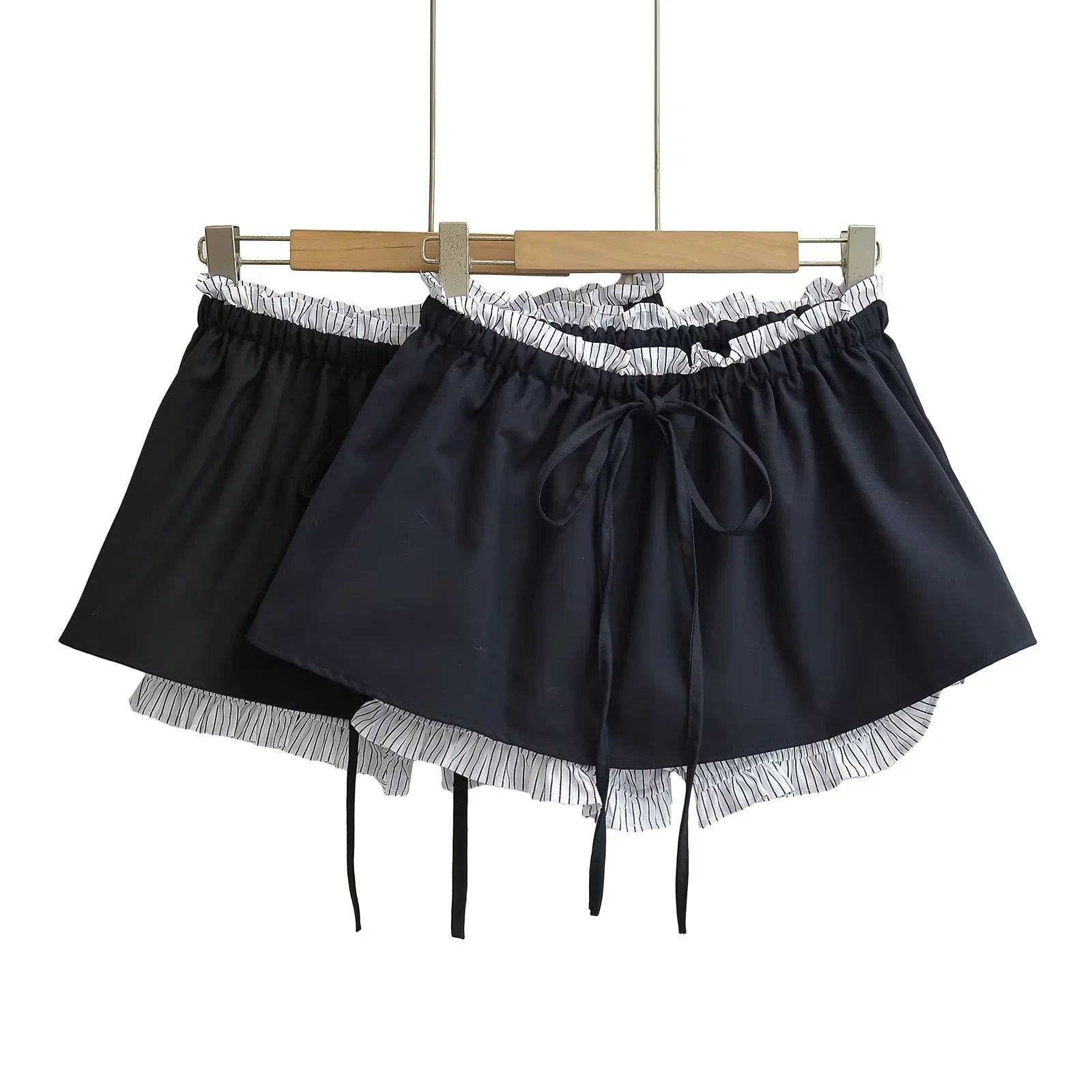 스파이스 소녀 컬러 매칭 가짜 투피스 스커트 여성의 여름 높은 허리 슬림 A 라인 스커트 작은 신선한 우드 이어 보우 스커트