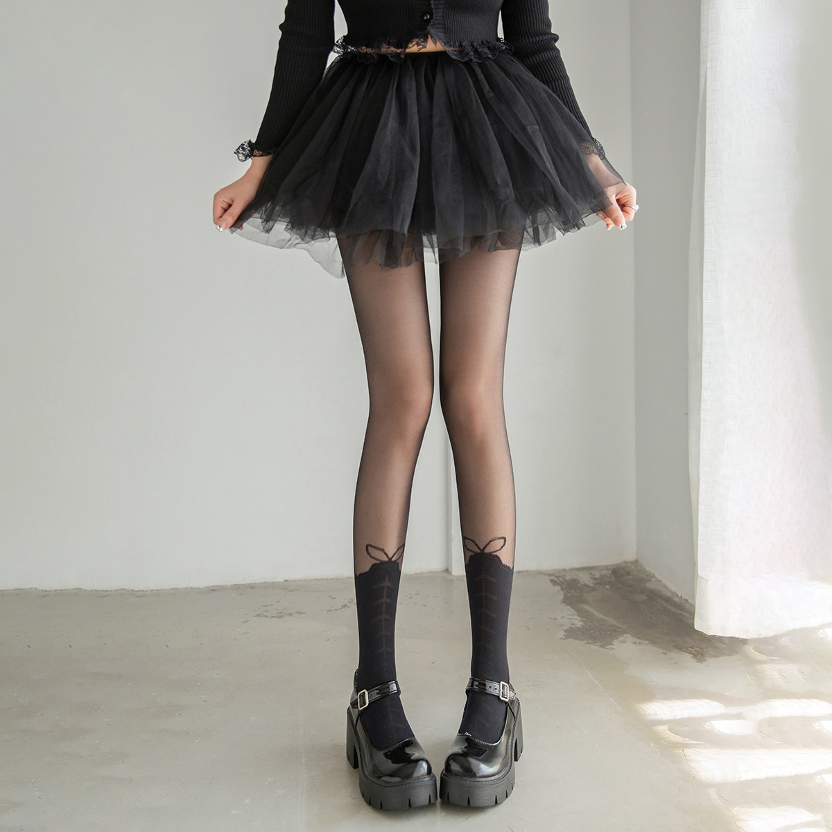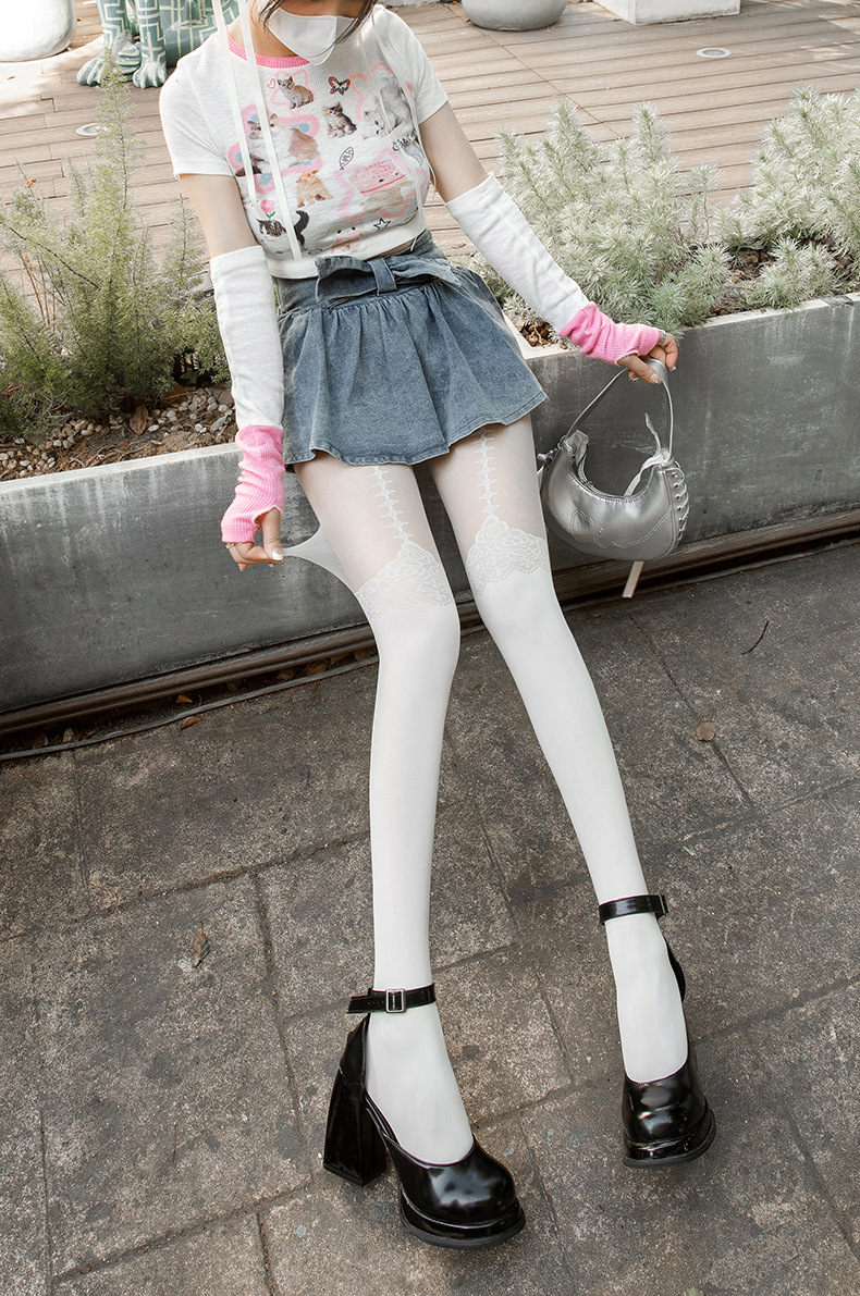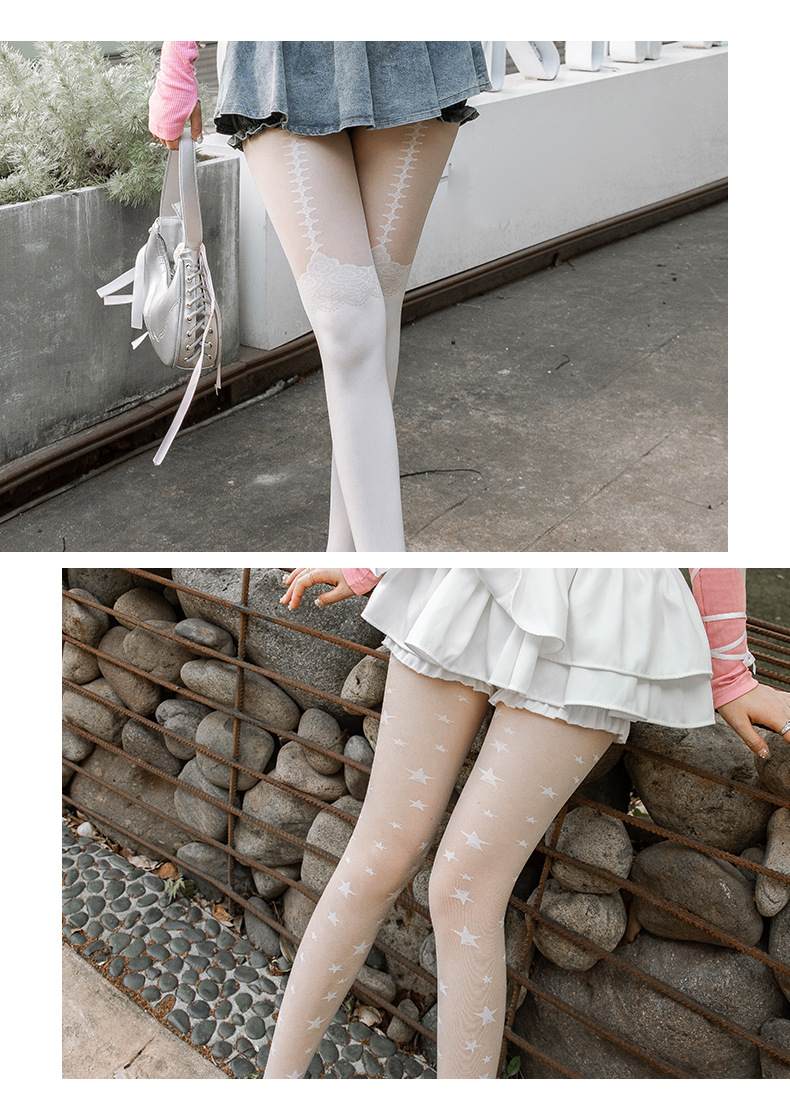 여름 새로운 스타 레이스 여러 인쇄 된 바느질 양말 Lolita Jk 인쇄 된 바느질 가짜 키 큰 팬티 스타킹