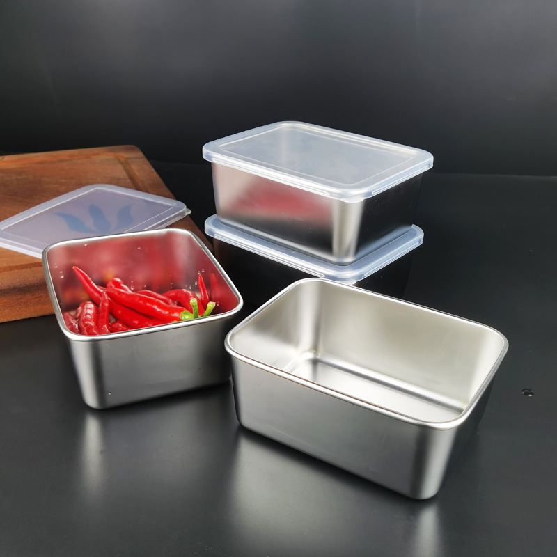 두꺼운 316 스테인레스 스틸 식품 등급 사각형 플레이트 뚜껑 차가운 야채 플레이트 저장 트레이 상업용 다목적 플레이트 플랫 바닥 밀봉
