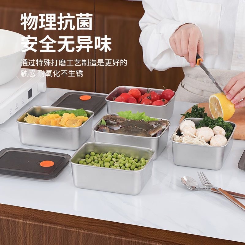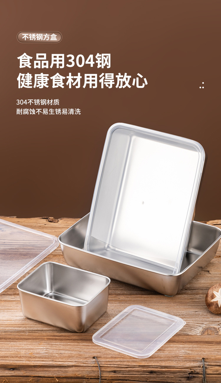 두꺼운 316 스테인레스 스틸 식품 등급 사각형 플레이트 뚜껑 차가운 야채 플레이트 저장 트레이 상업용 다목적 플레이트 플랫 바닥 밀봉스토어 가기