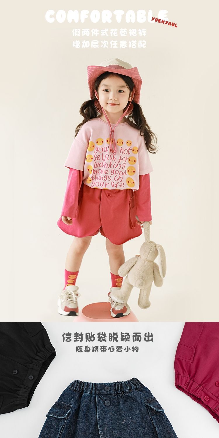Wuri Boo 소녀 가을 가짜 투피스 꽃 버브 스커트 바지 어린이 서양식 귀여운 캐주얼 반바지 아기 바지스토어 가기
