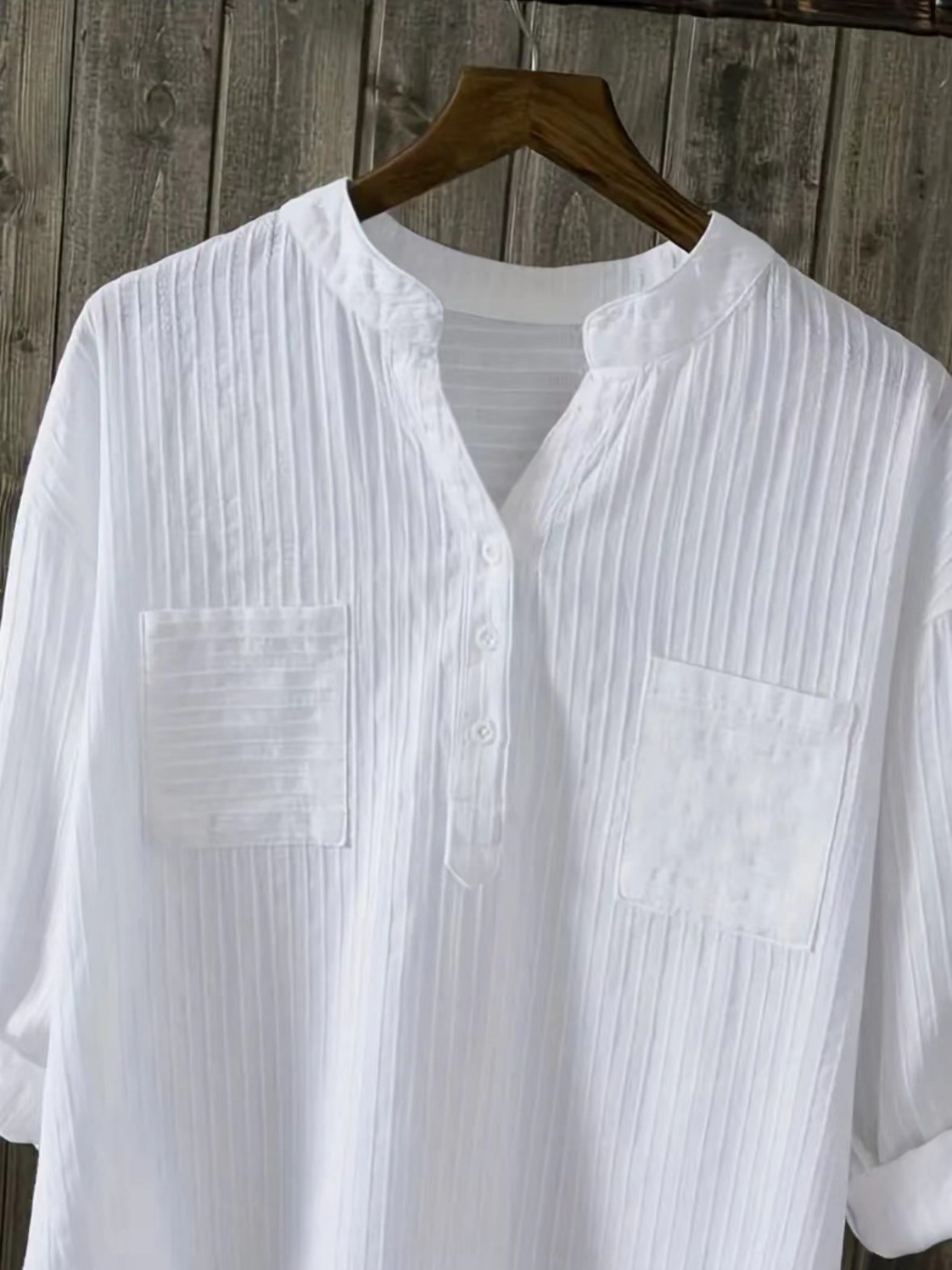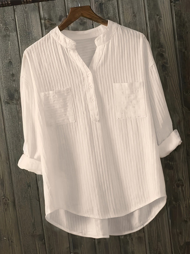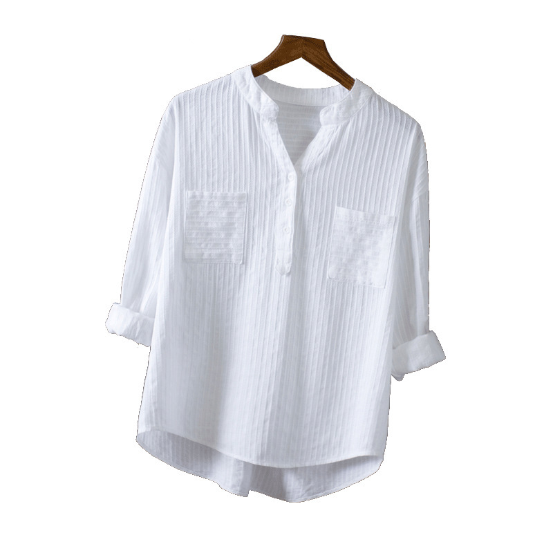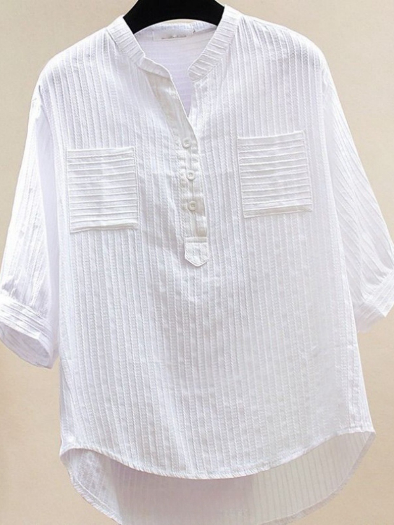 2026 유럽 및 미국 대형 여성복 흰색 셔츠 7부 소매 신상품 루즈핏 캐주얼 디자인 V넥 셔츠