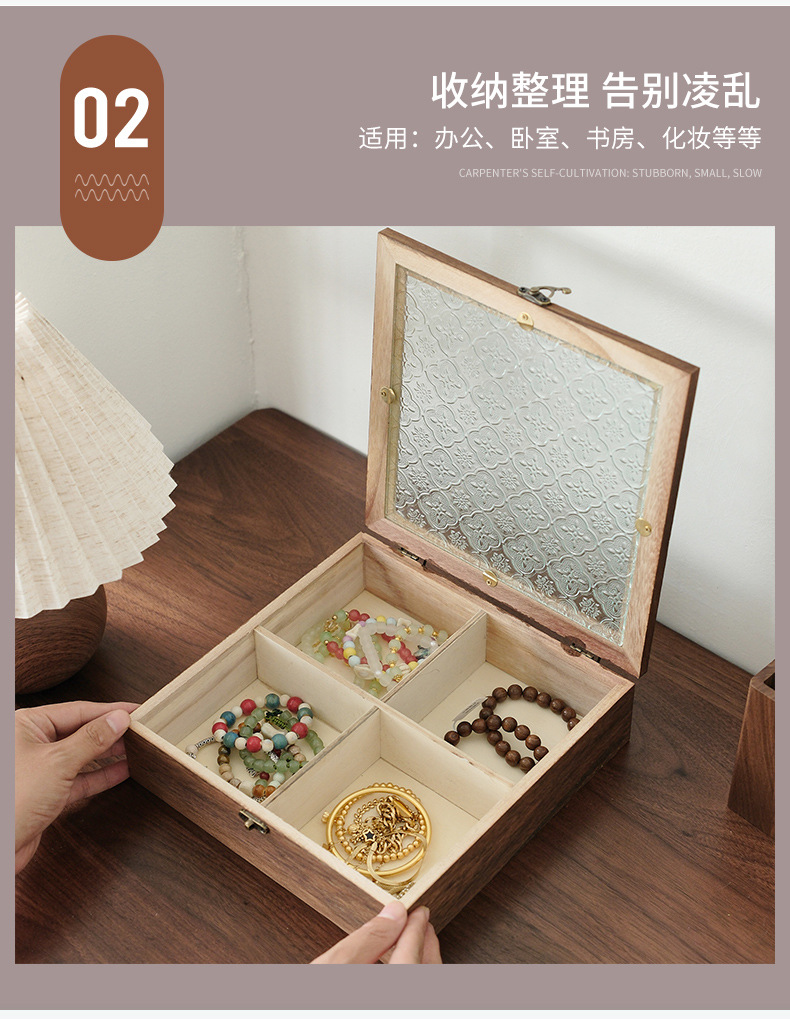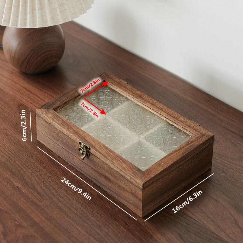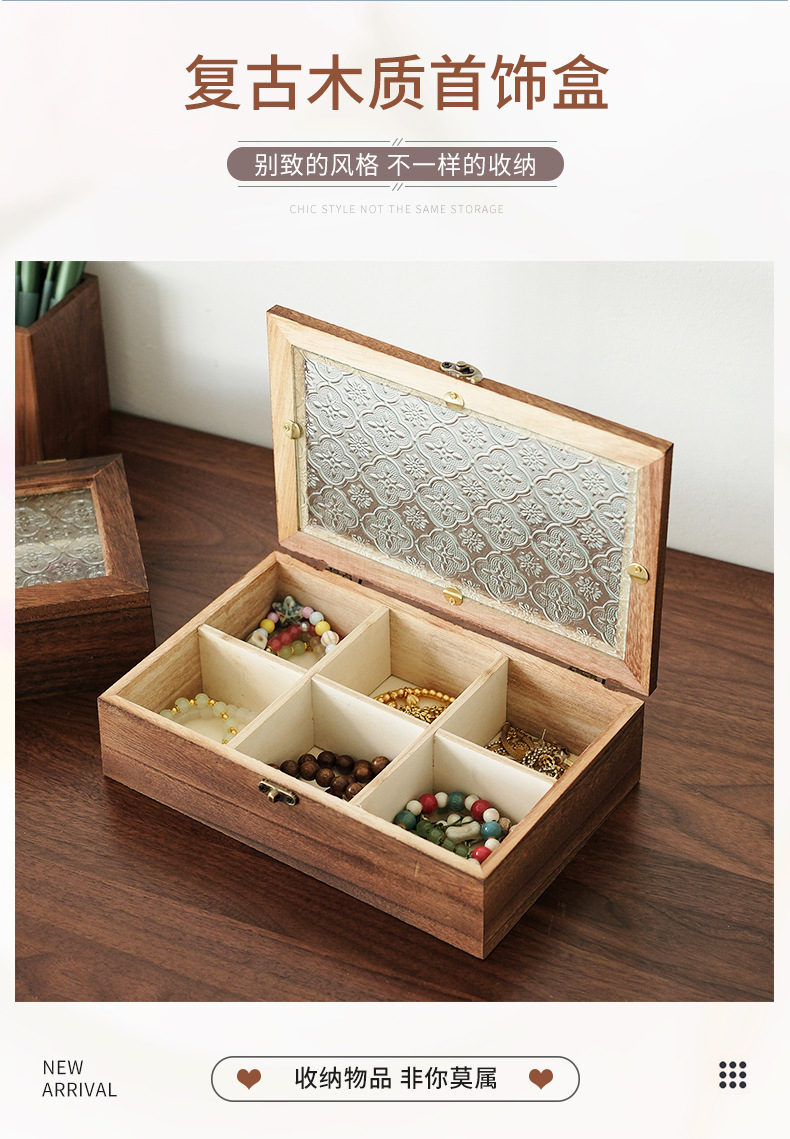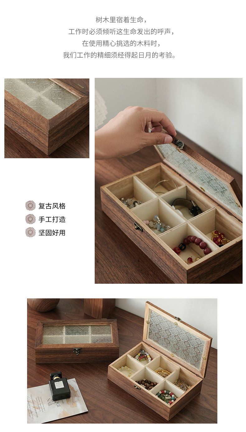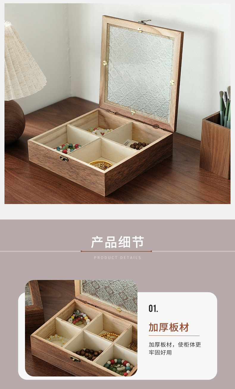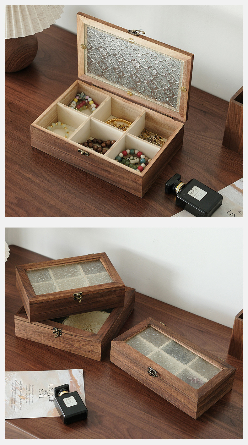 해바라기꽃 유리 보석함, 원목 보석함, 뚜껑형 칸막이 나무 상자, 레트로 데스크탑용 방진 보관함스토어 가기