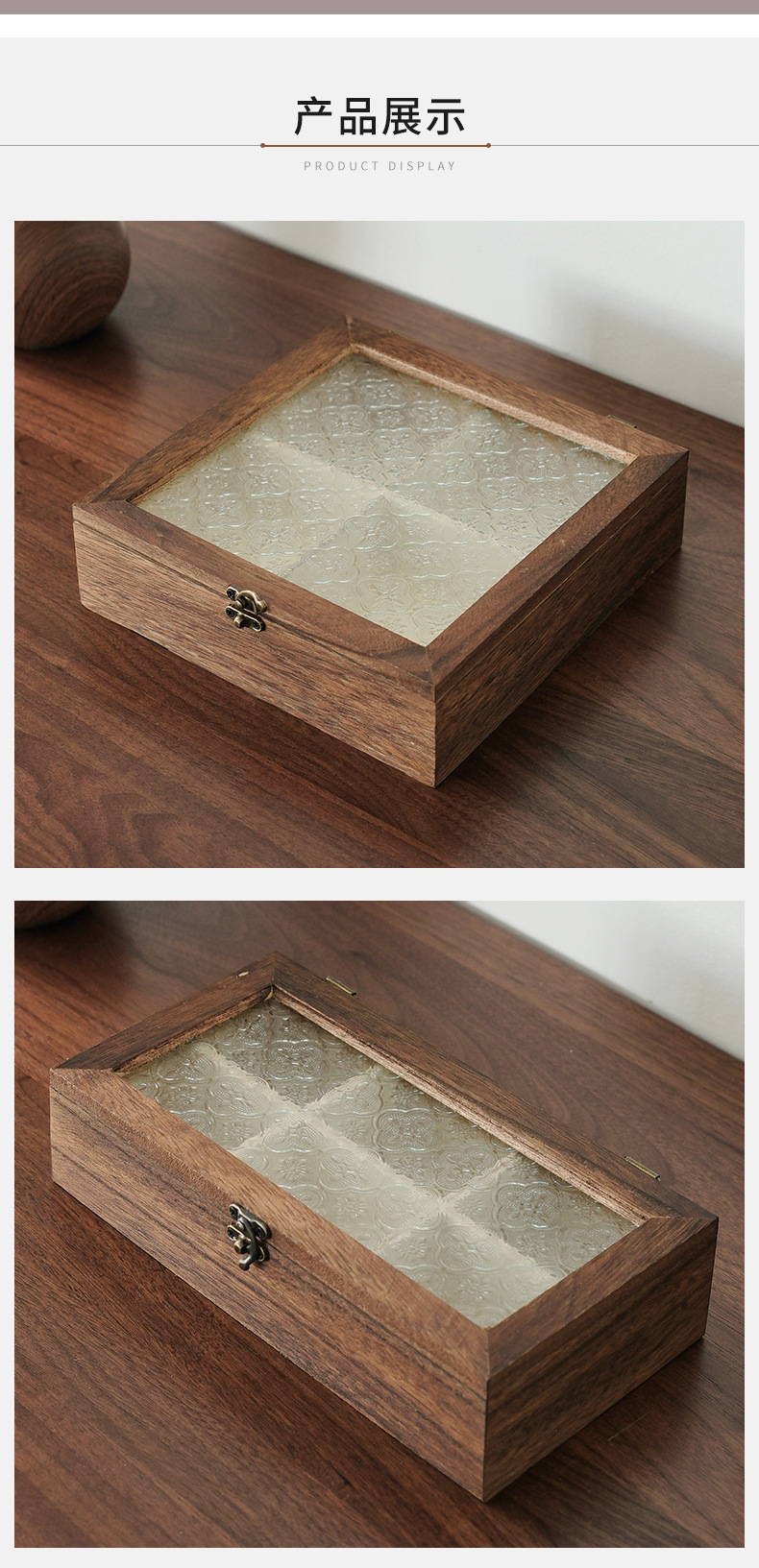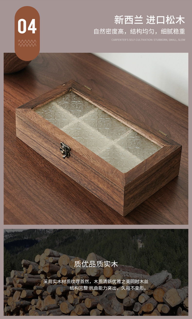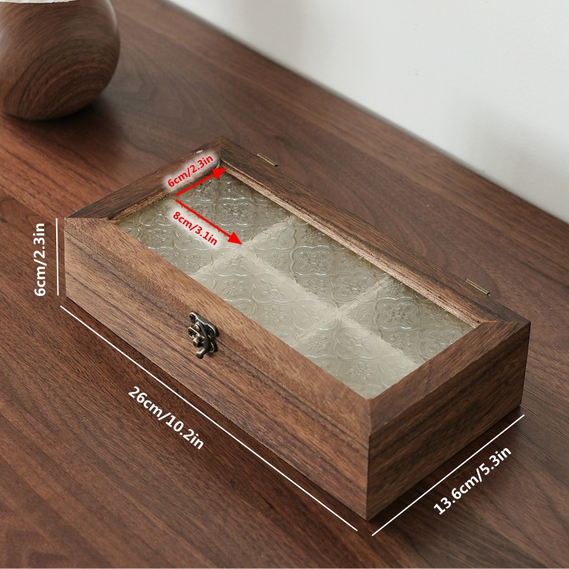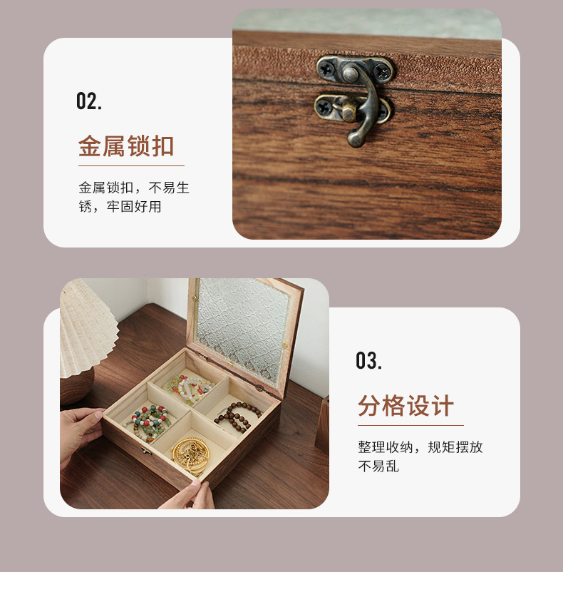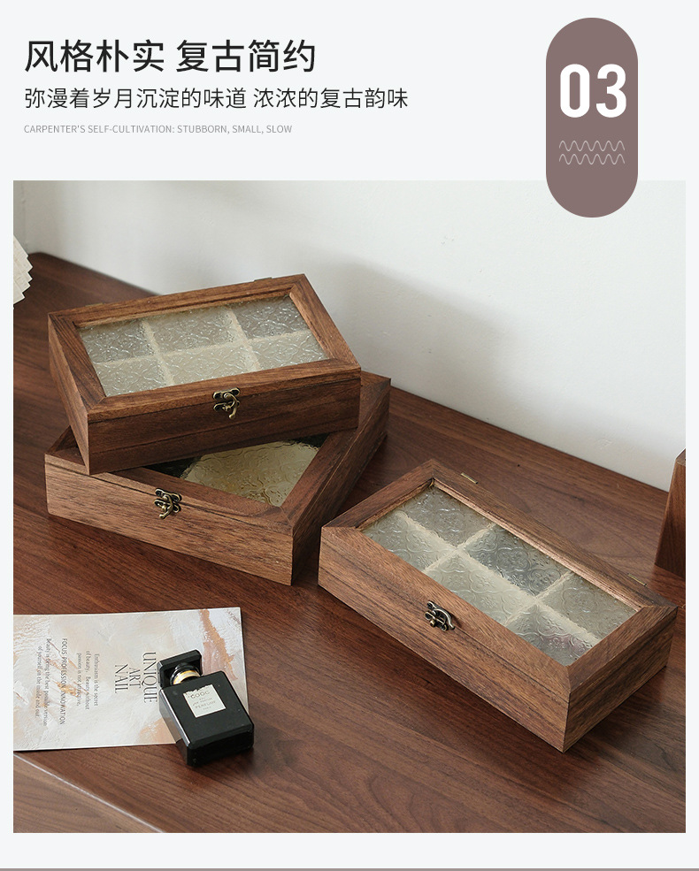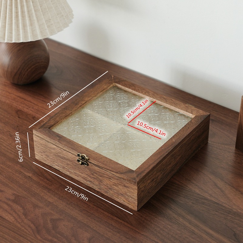 해바라기꽃 유리 보석함, 원목 보석함, 뚜껑형 칸막이 나무 상자, 레트로 데스크탑용 방진 보관함스토어 가기