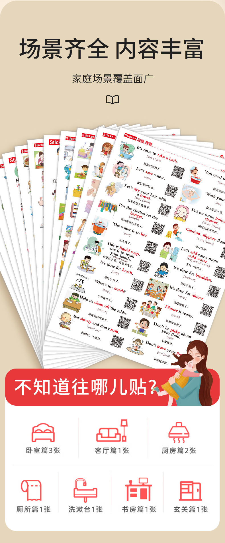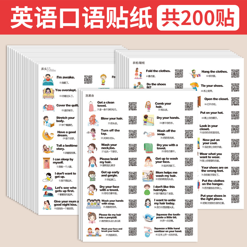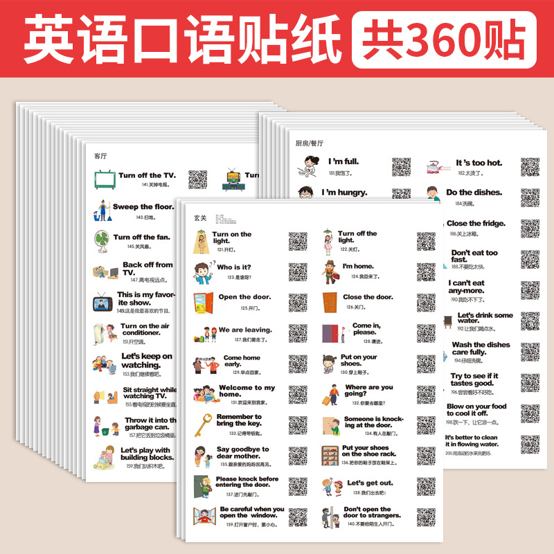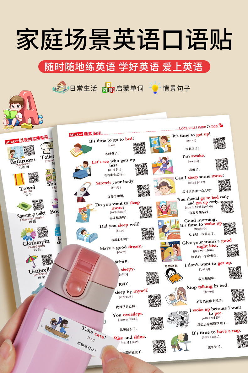 가족 상황 영어 스티커 일상 생활 장면 음성 언어 어린이 계몽주의 영어 단어 학습 포스트잇 노트스토어 가기