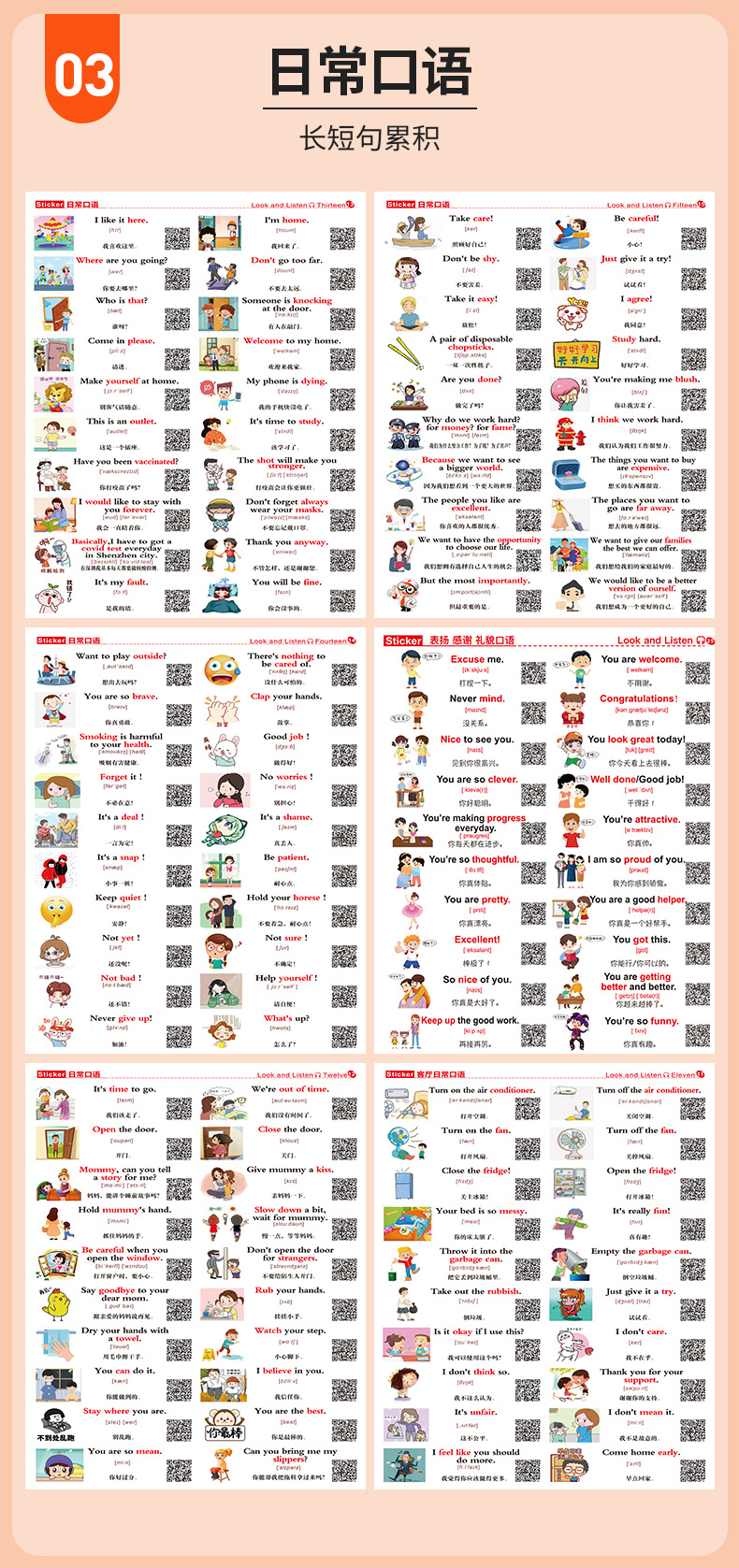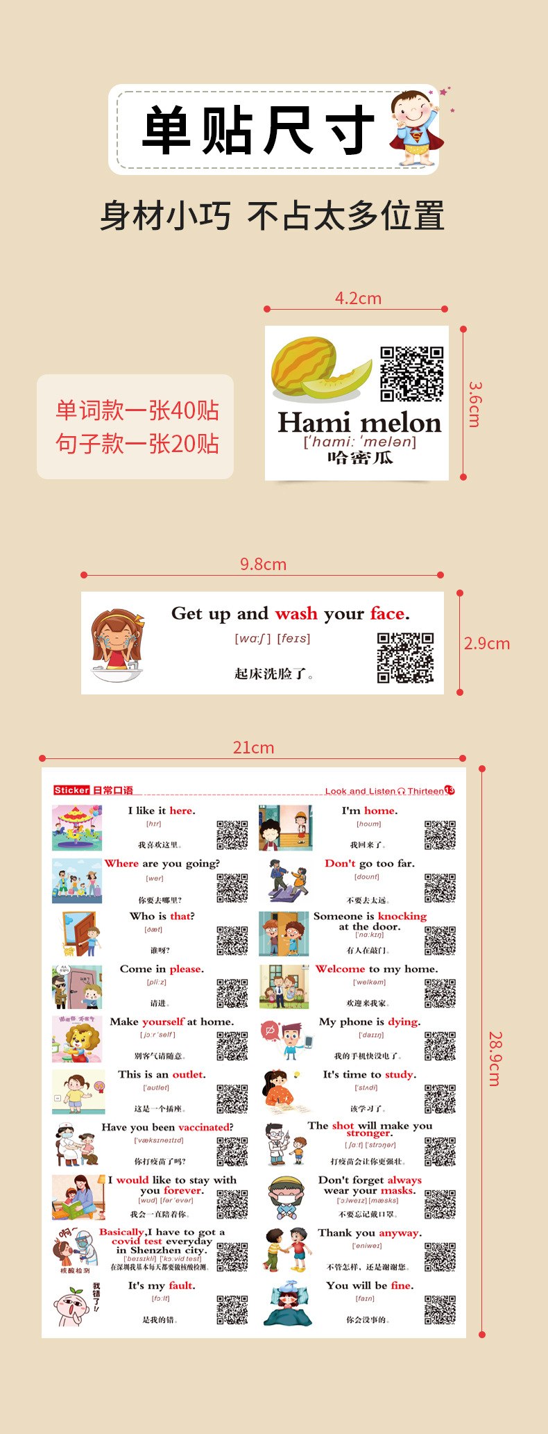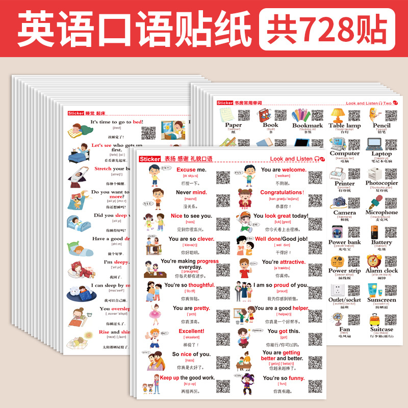 가족 상황 영어 스티커 일상 생활 장면 음성 언어 어린이 계몽주의 영어 단어 학습 포스트잇 노트스토어 가기