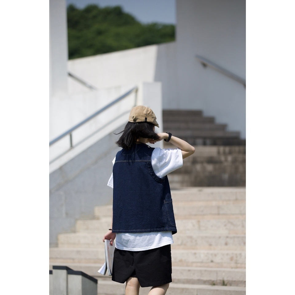 봄과 여름 일본 V-넥 멀티 포켓 캐주얼 데님 조끼 여성 카디건 올매치 느슨한 외부 작업복 조끼스토어 가기
