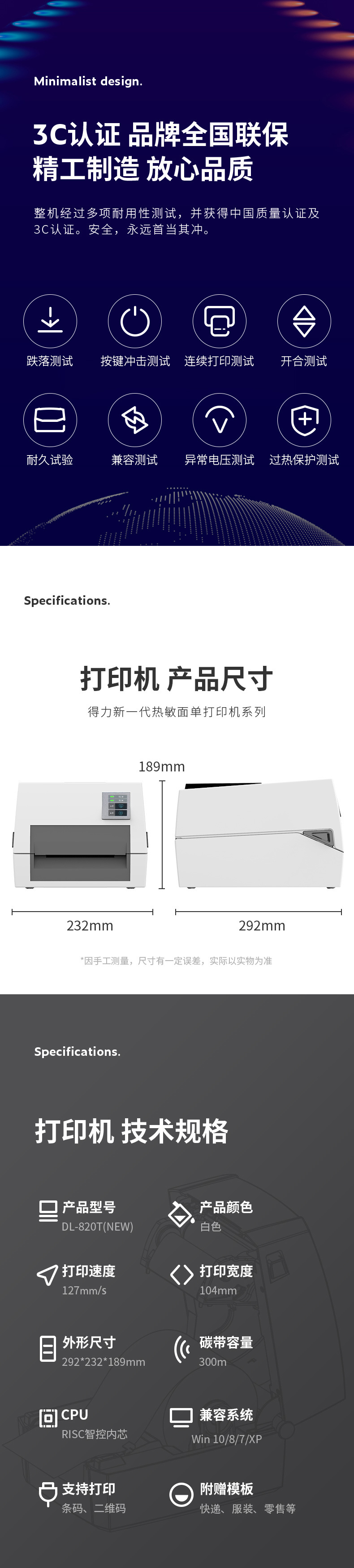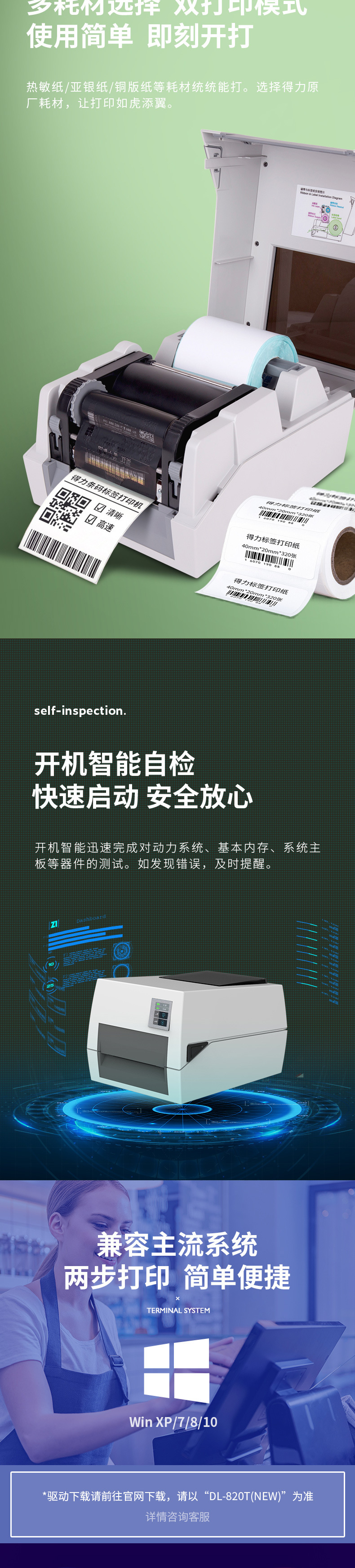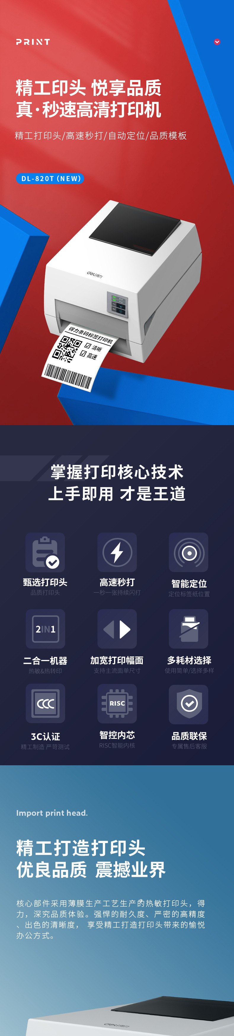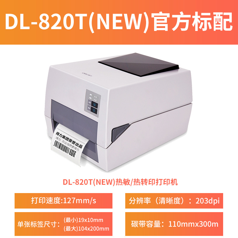 델리 DL-820T 바코드 프린터 전자 표면 단일 코팅 종이 라벨 종이 자체 접착 열 전송 프린터스토어 가기