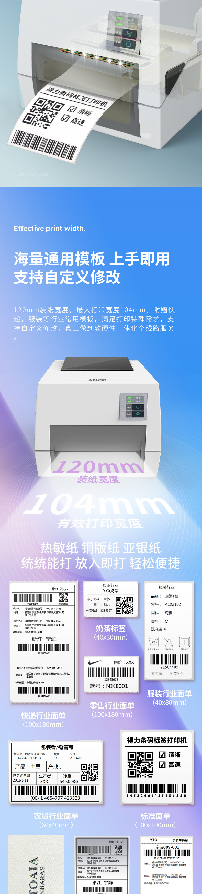 델리 DL-820T 바코드 프린터 전자 표면 단일 코팅 종이 라벨 종이 자체 접착 열 전송 프린터