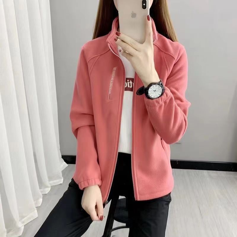 가을과 겨울 기모 여성용 캐주얼 양털 반 높이 칼라 두꺼운 카디건 스포츠 야외 따뜻한 스웨터 양털 코트스토어 가기