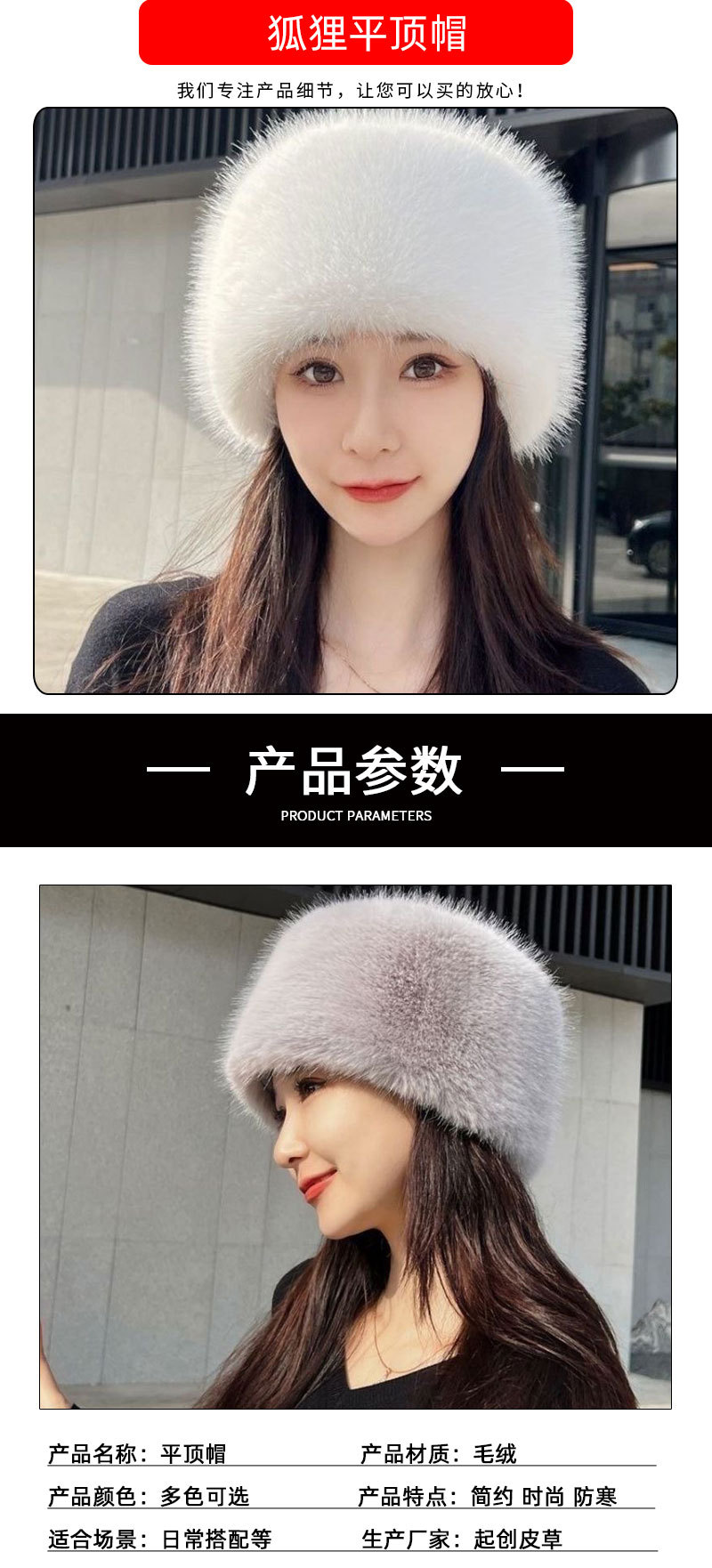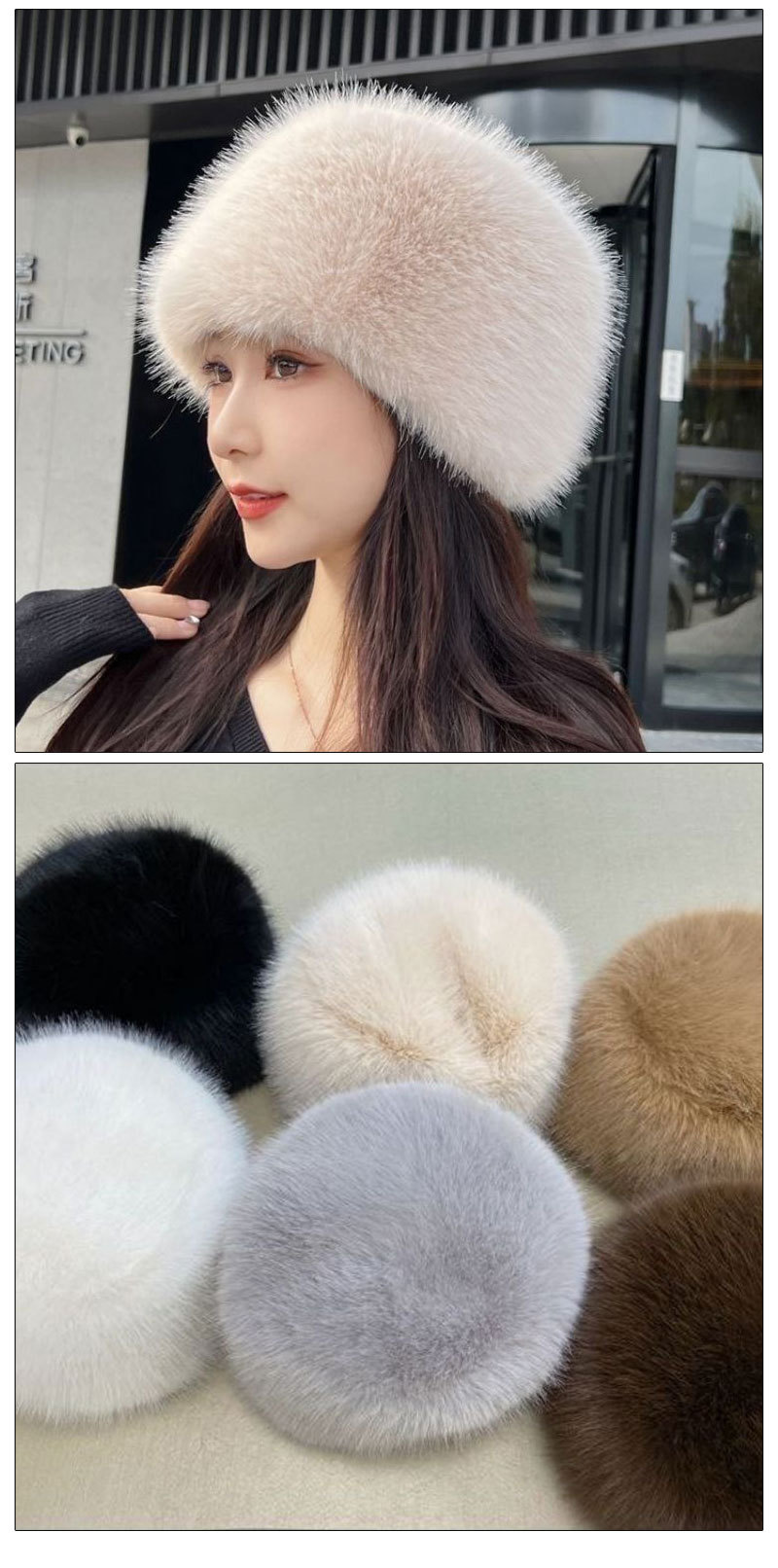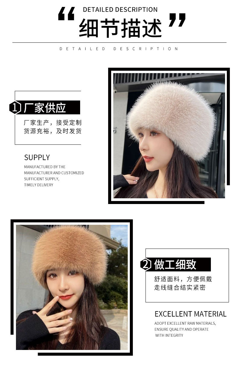 크로스보더 겨울 신상품 방한 평평한 모자, 얼굴을 작아보이게 하는 다용도 귀 보호 여우털 모자스토어 가기
