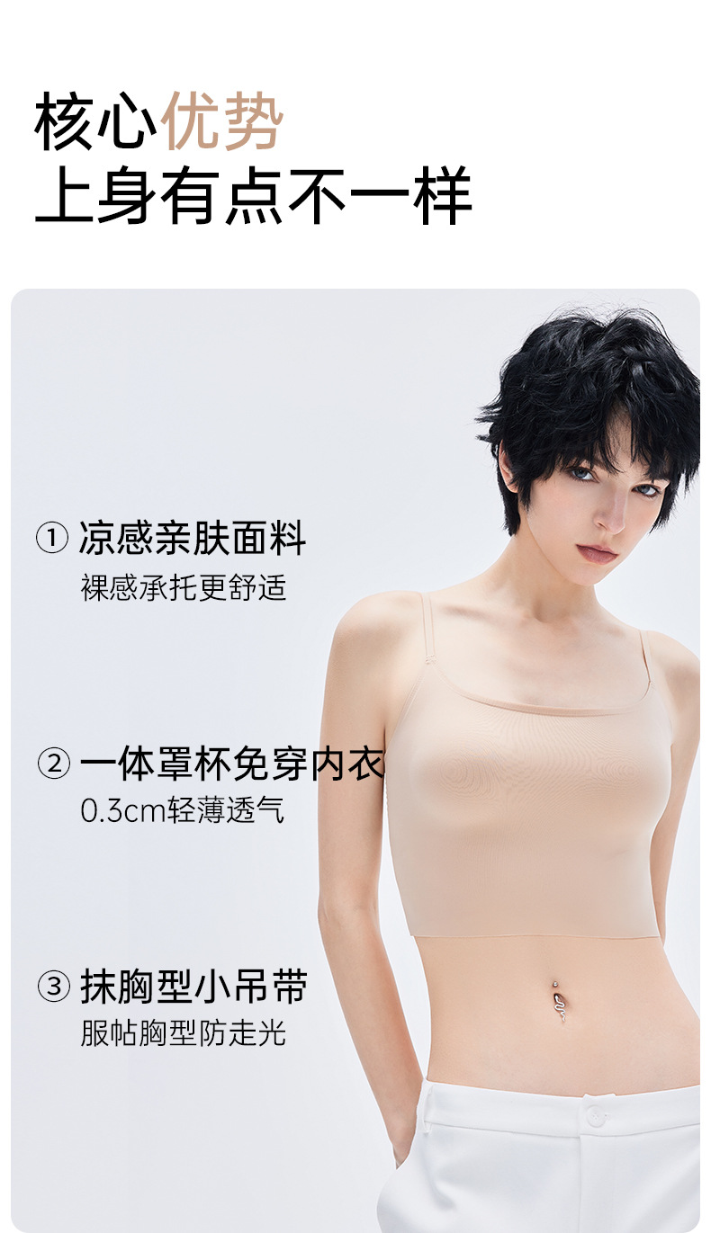 파운데이션처럼 부드러운 느낌의 브라탑, 풀컵형 원피스 브라, 등이 아름다운 여성용 속옷