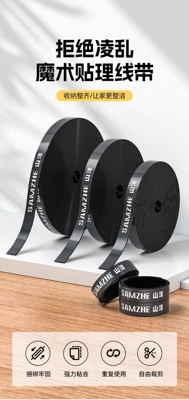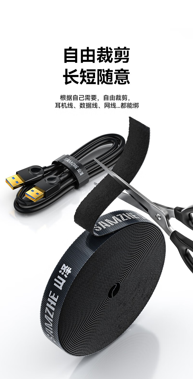 야마자와 컴퓨터 케이블 타이 무료 절단 케이블 타이 벨트 연속 벨크로 케이블 스토리지 고정
