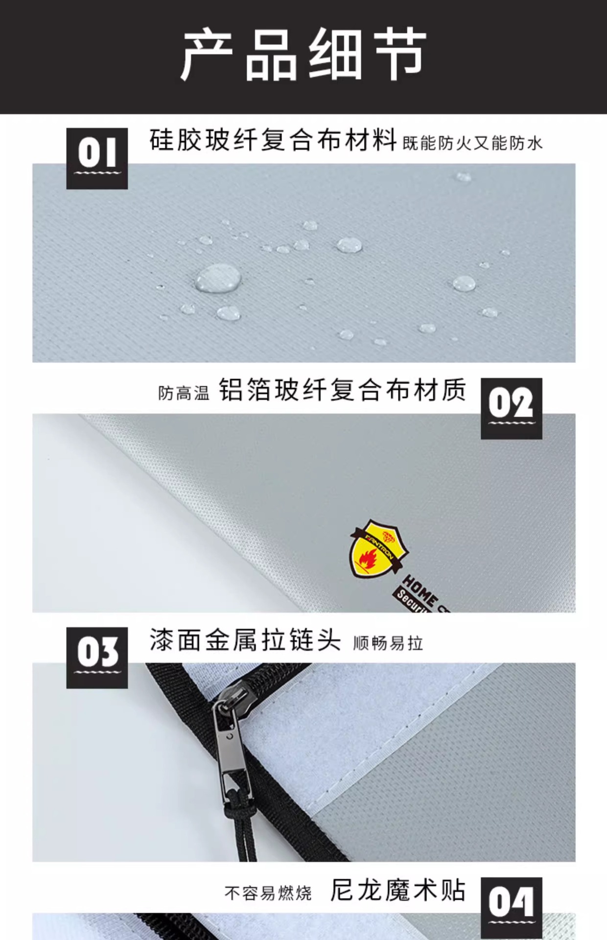 Jerry의 내화 문서 가방 지퍼 재료 난연성 저장 가방 인증서 여권 봉인 방수 수분 증명 문서 가방