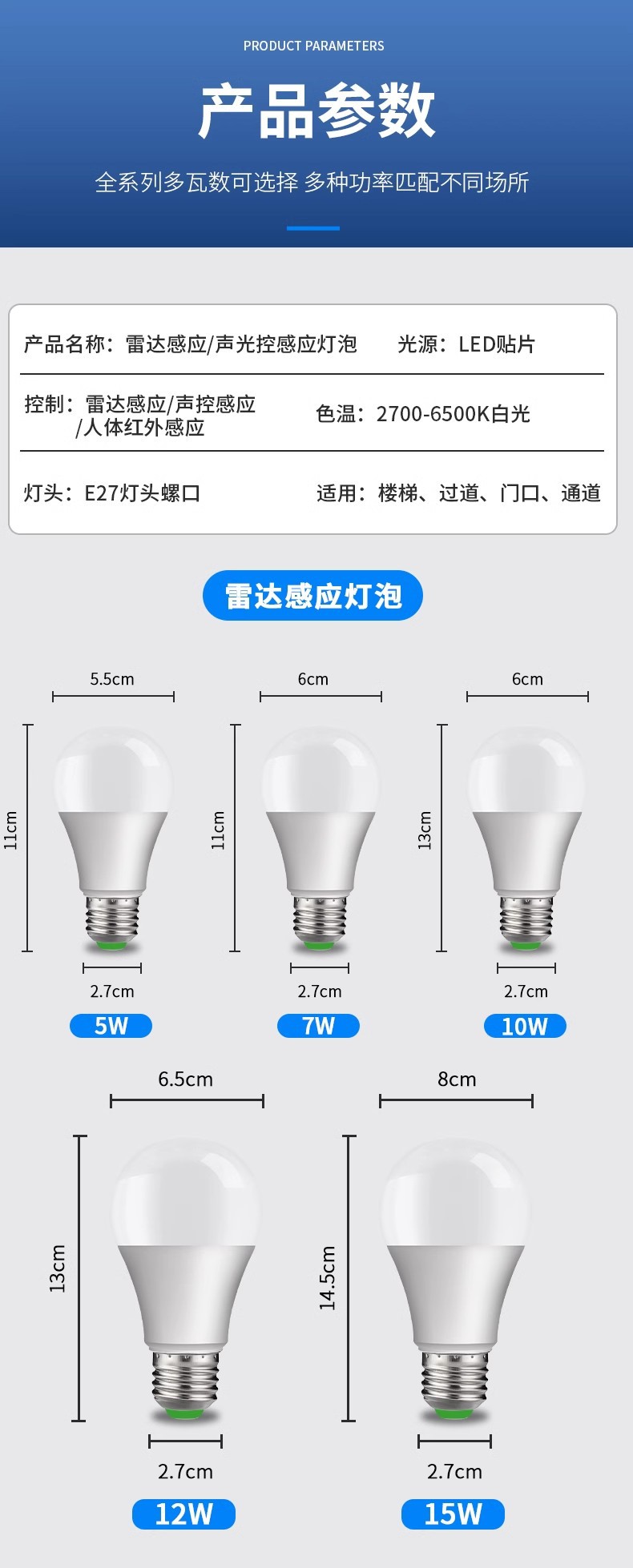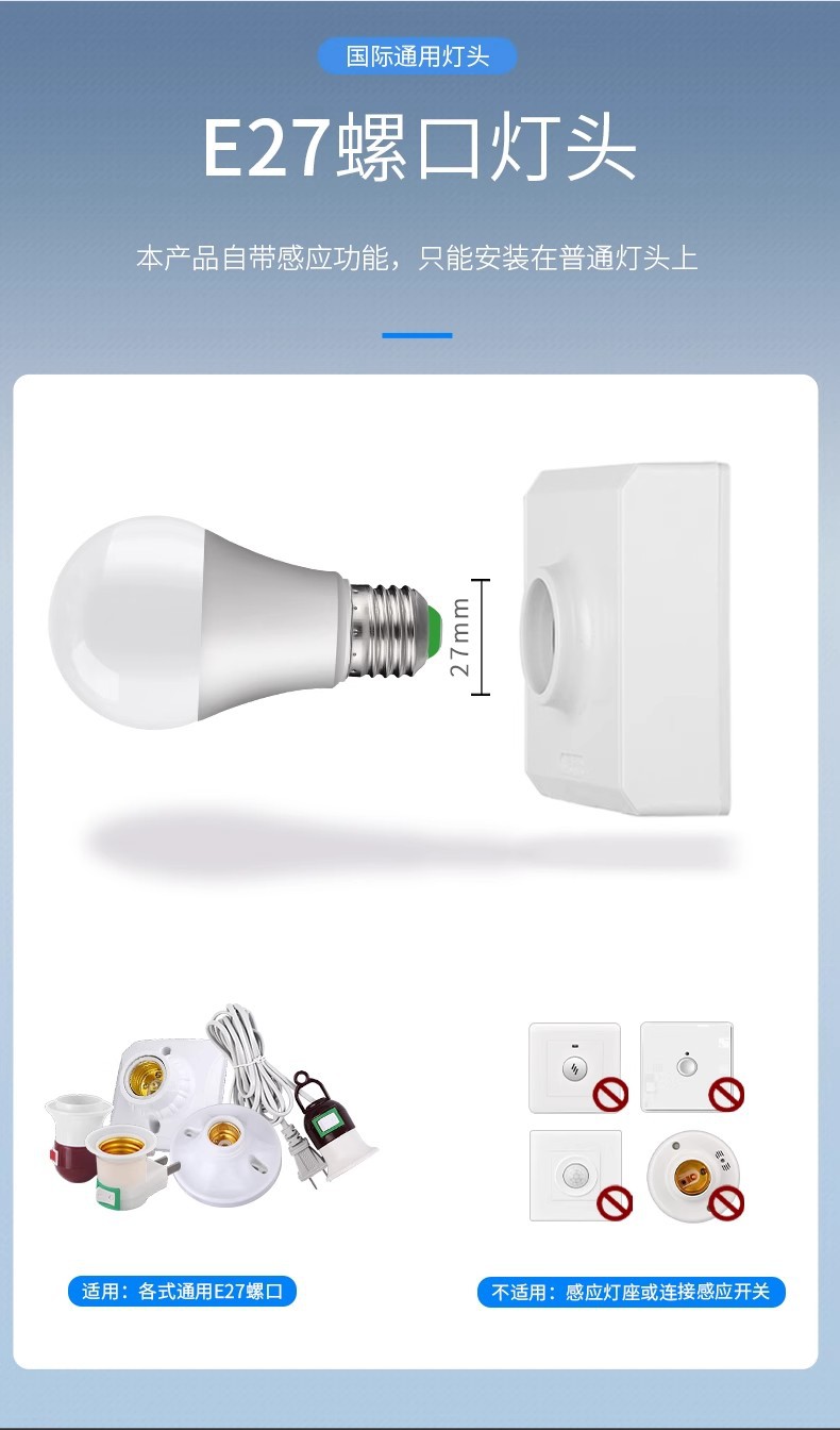 유도 전구 레이더 인체 유도 램프 통로 음향 광학 제어 적외선 인간 레이더 계단 복도 LEd 전구