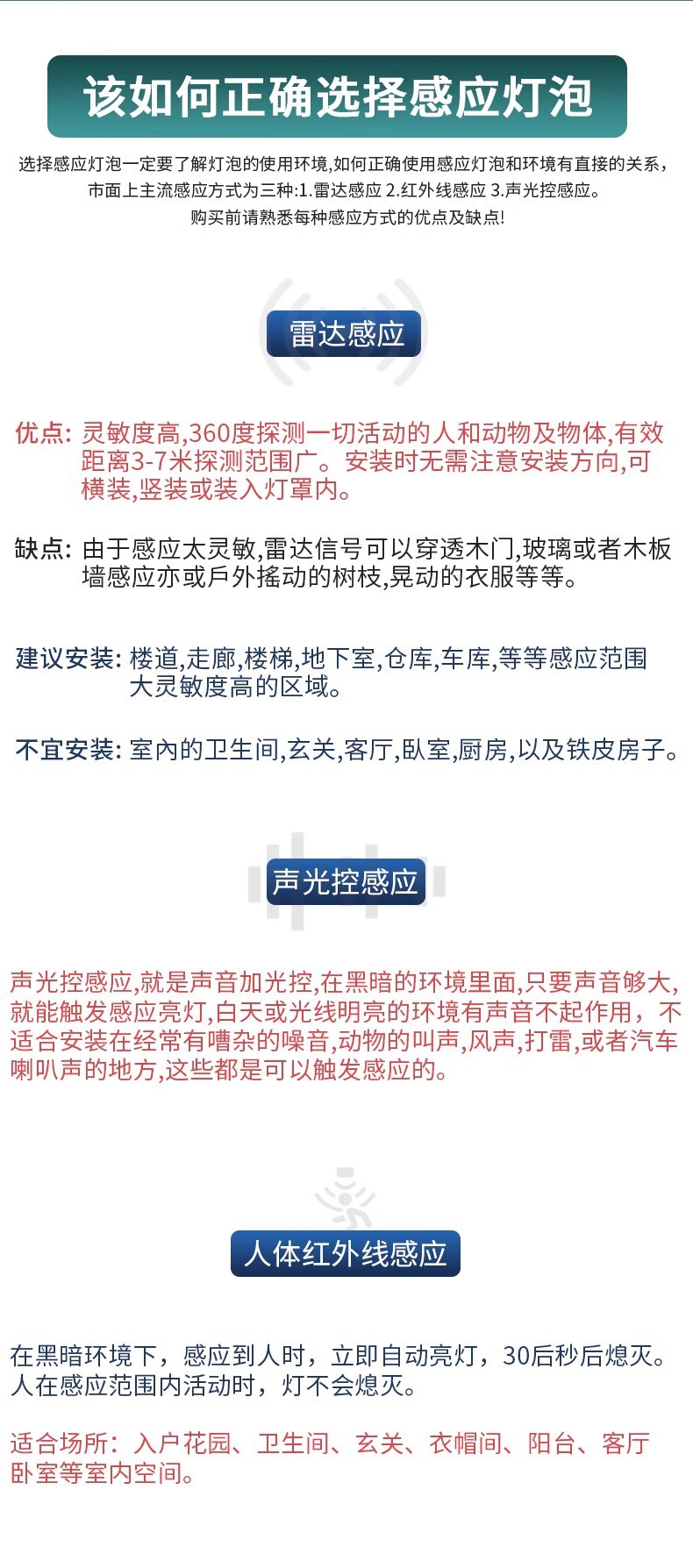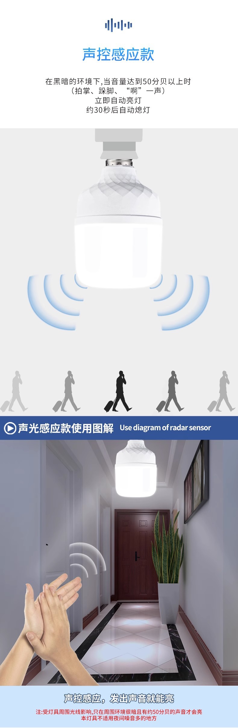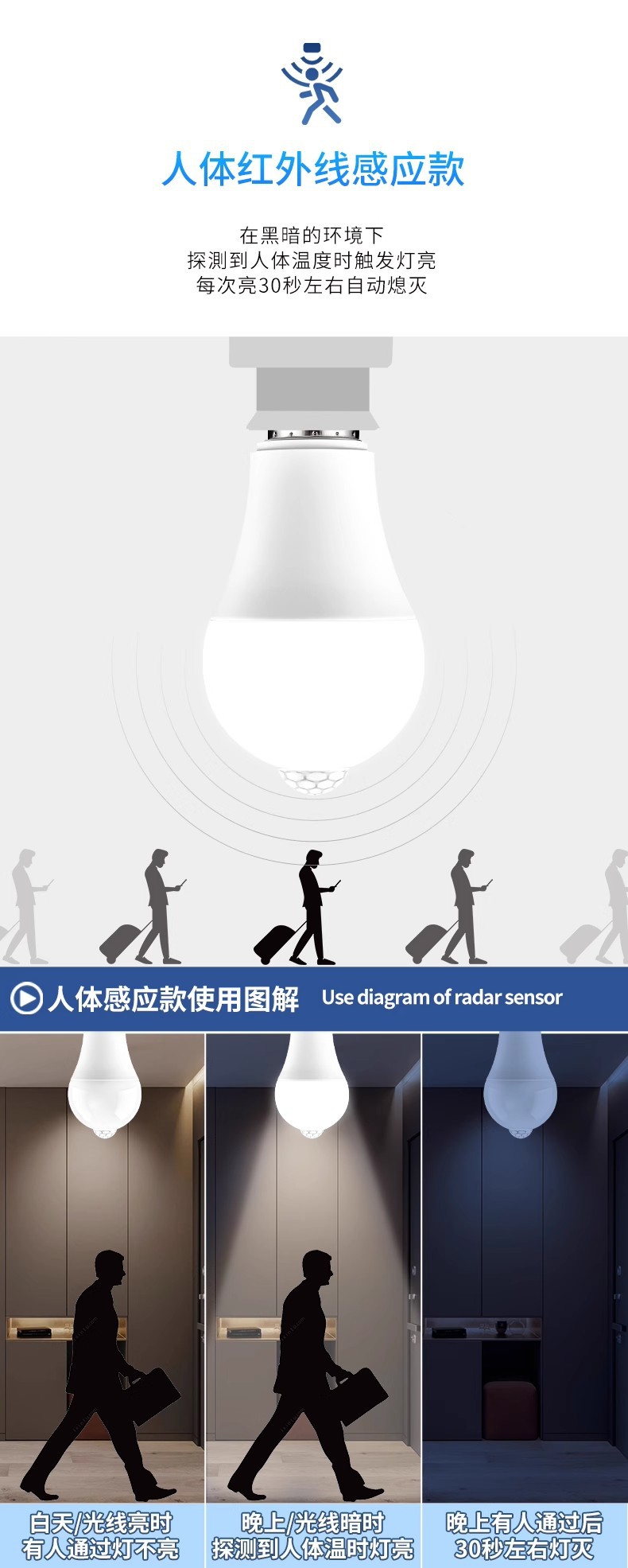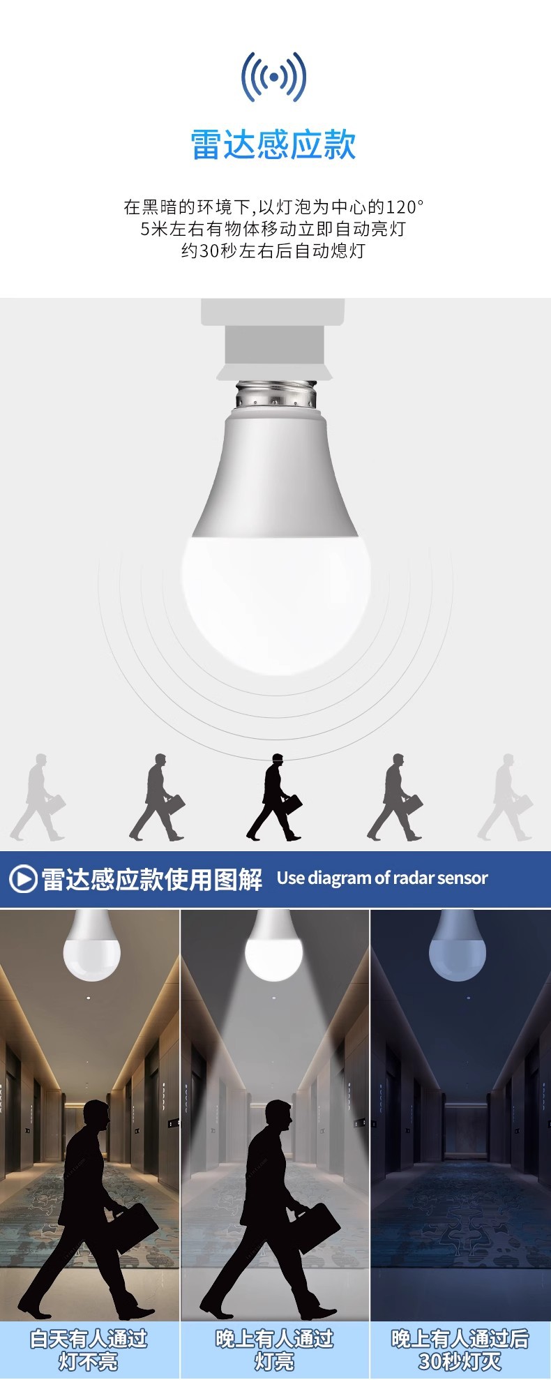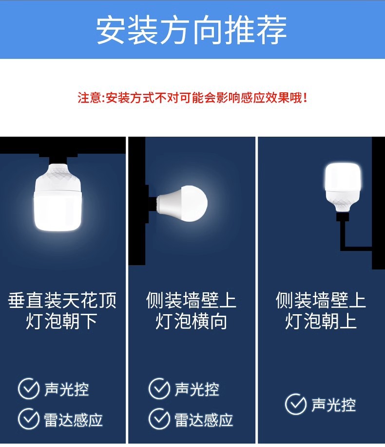 유도 전구 레이더 인체 유도 램프 통로 음향 광학 제어 적외선 인간 레이더 계단 복도 LEd 전구스토어 가기