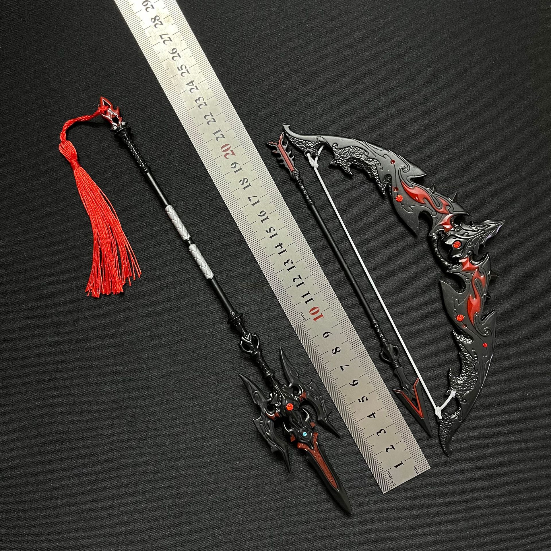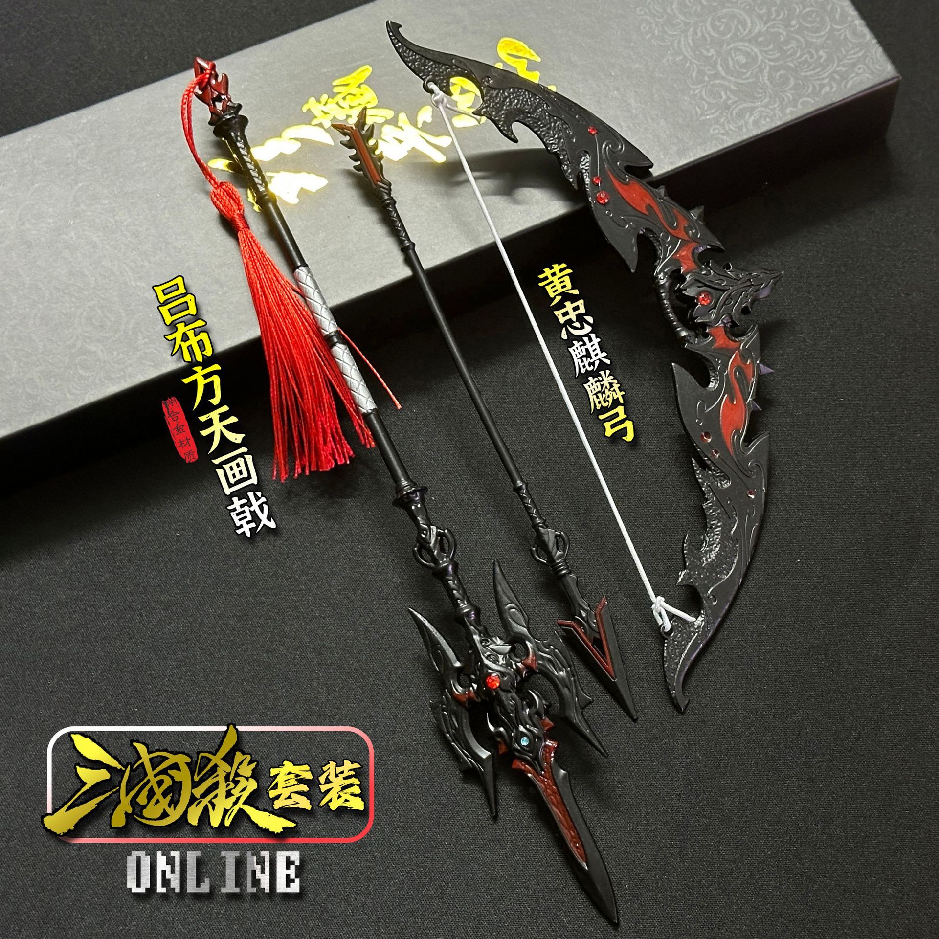 큰 Lv Bu Fangtian을 그린 Halberd 기린 활 합금 활 세트 금속 모델을 둘러싼 삼국 킬 게임