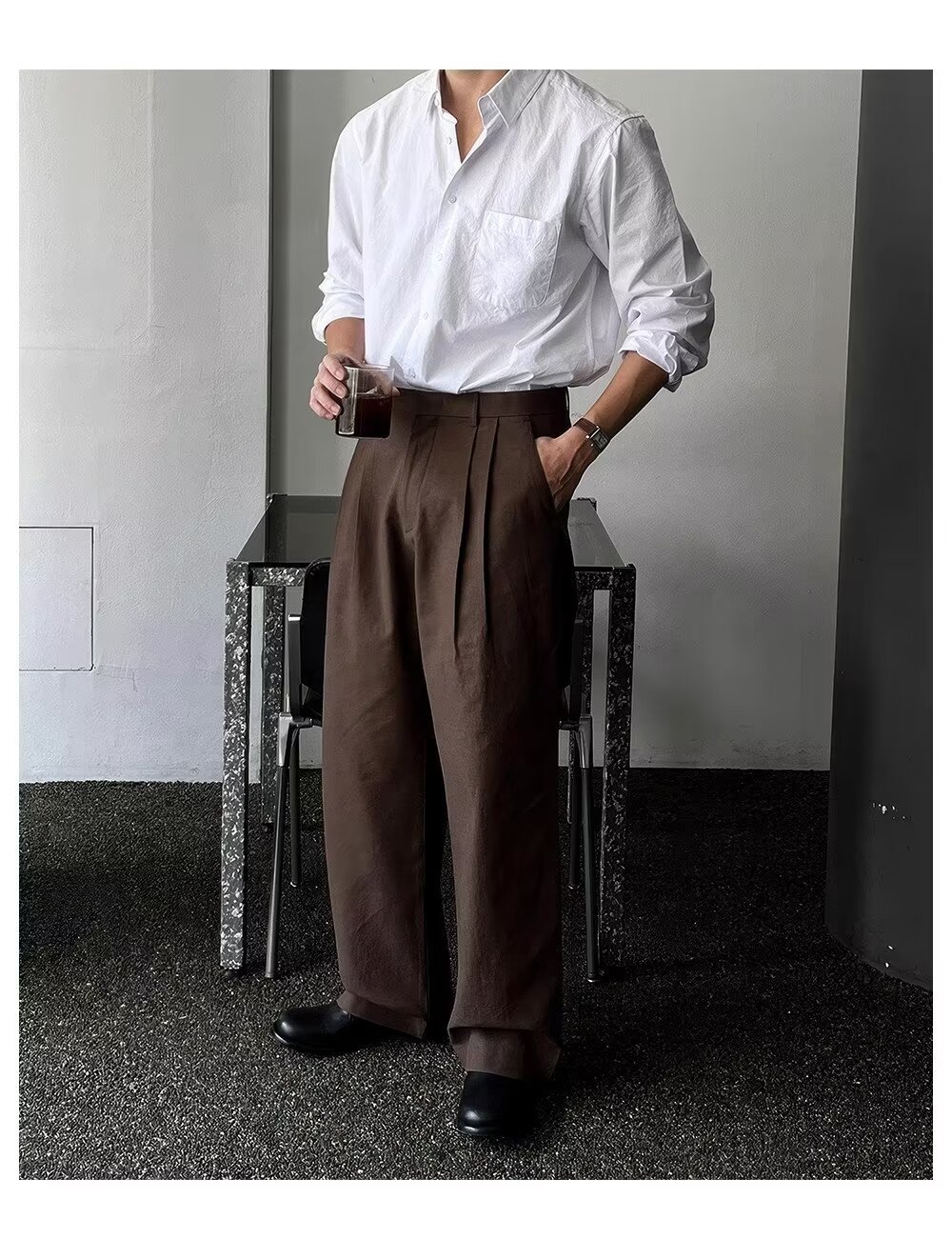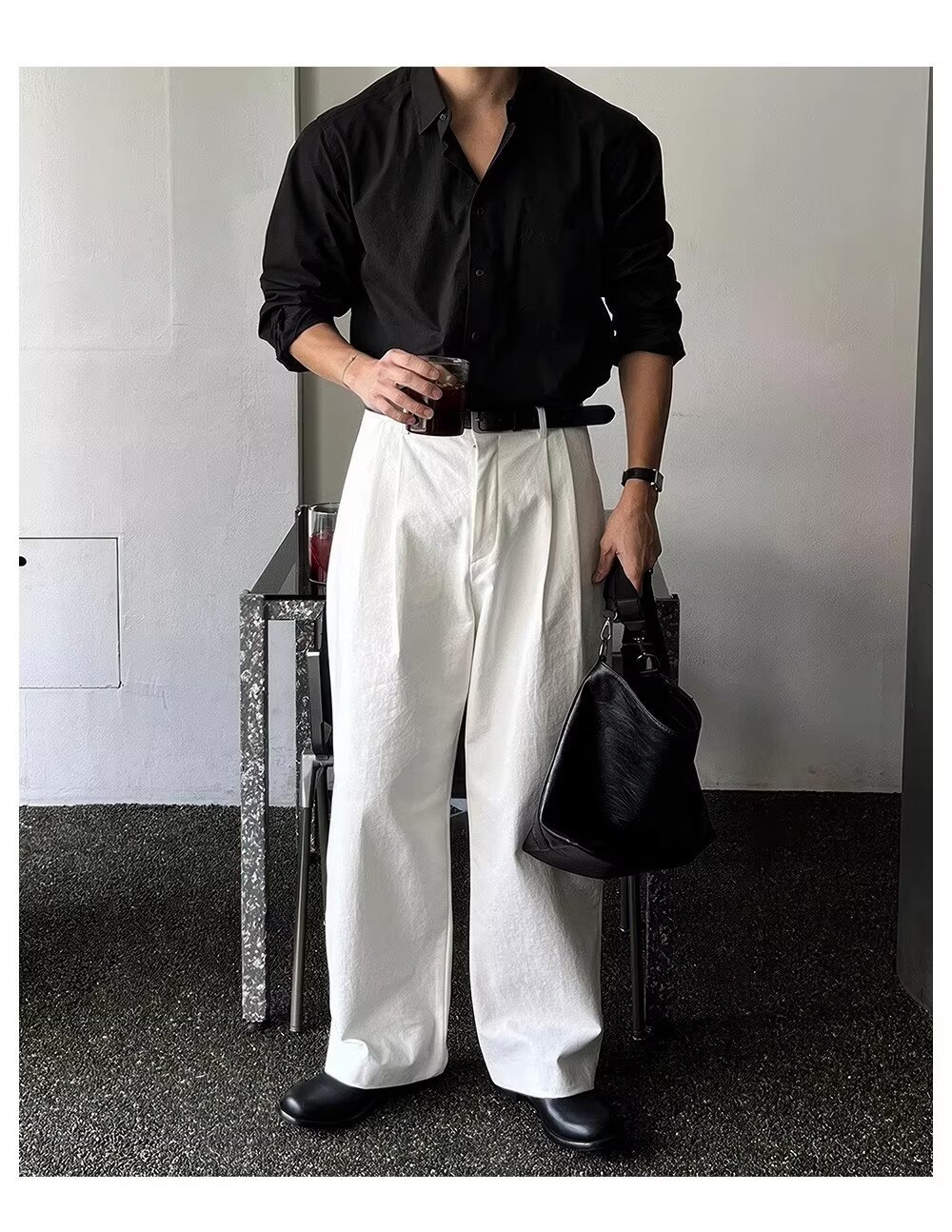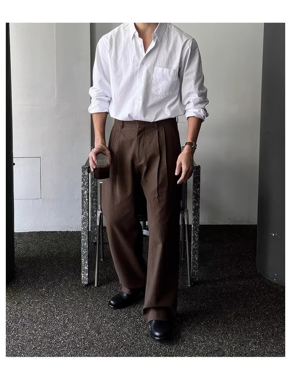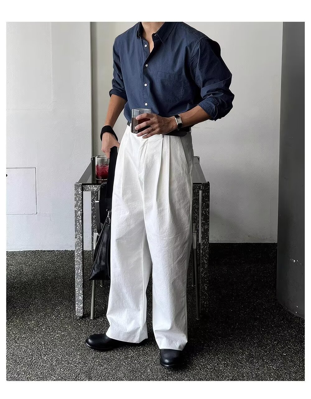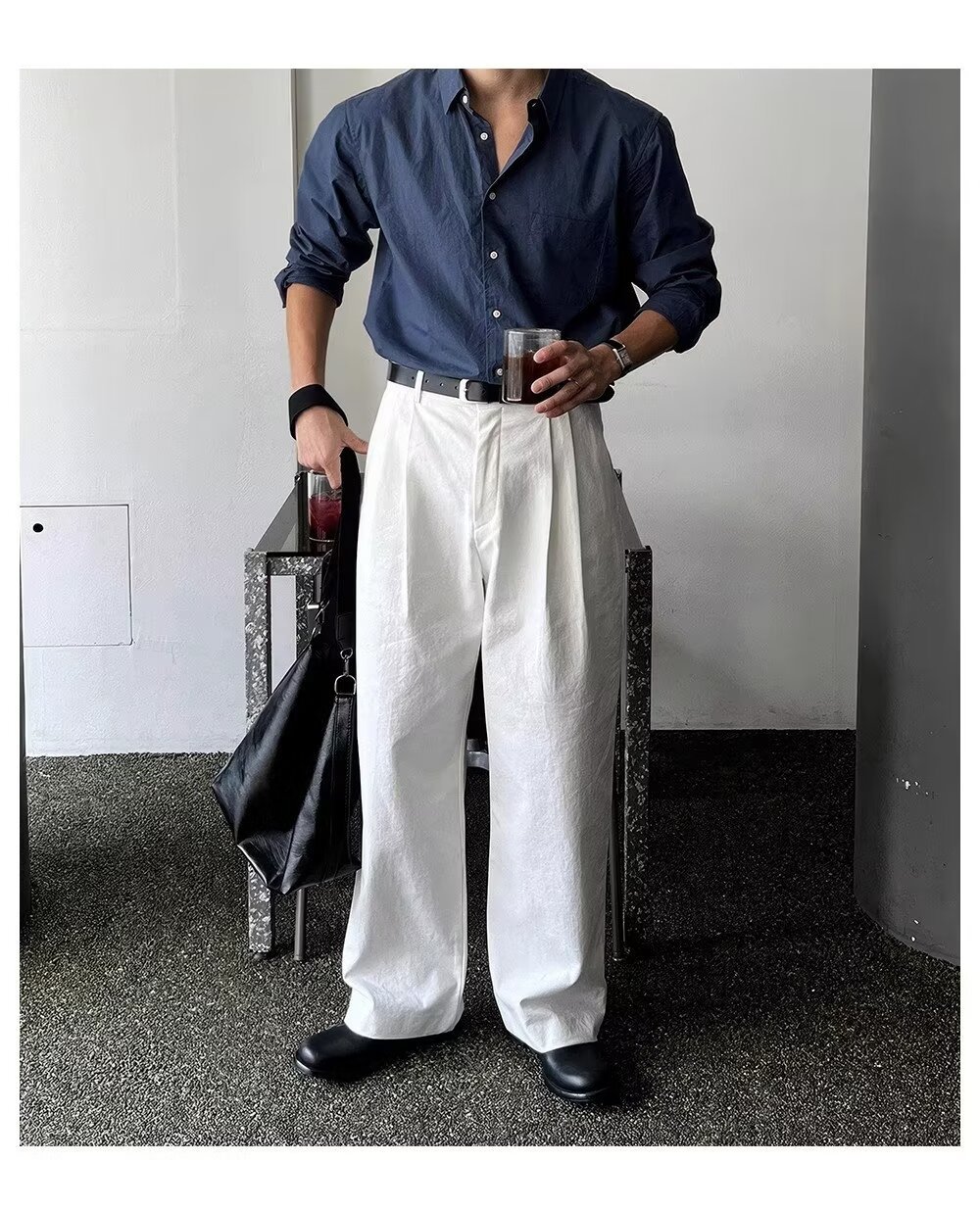 봄과 가을 최고 한국 느슨한 긴팔 셔츠 2024 남자 빛 럭셔리 주름 유행 캐주얼 올 매치 셔츠