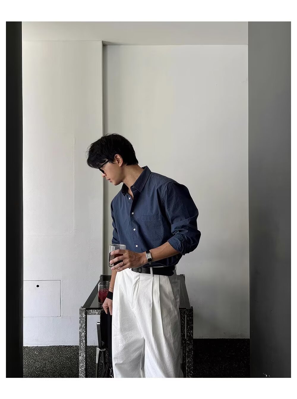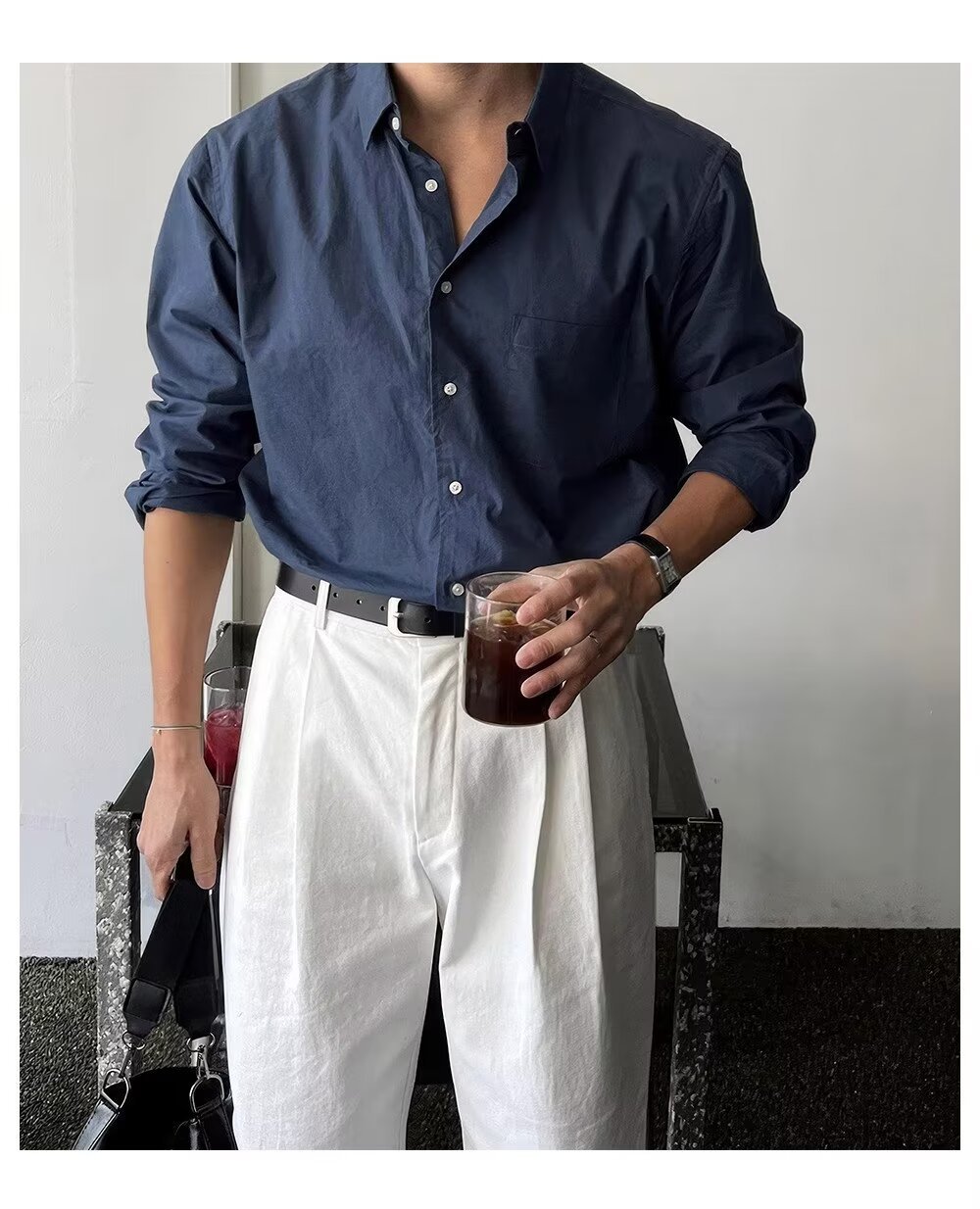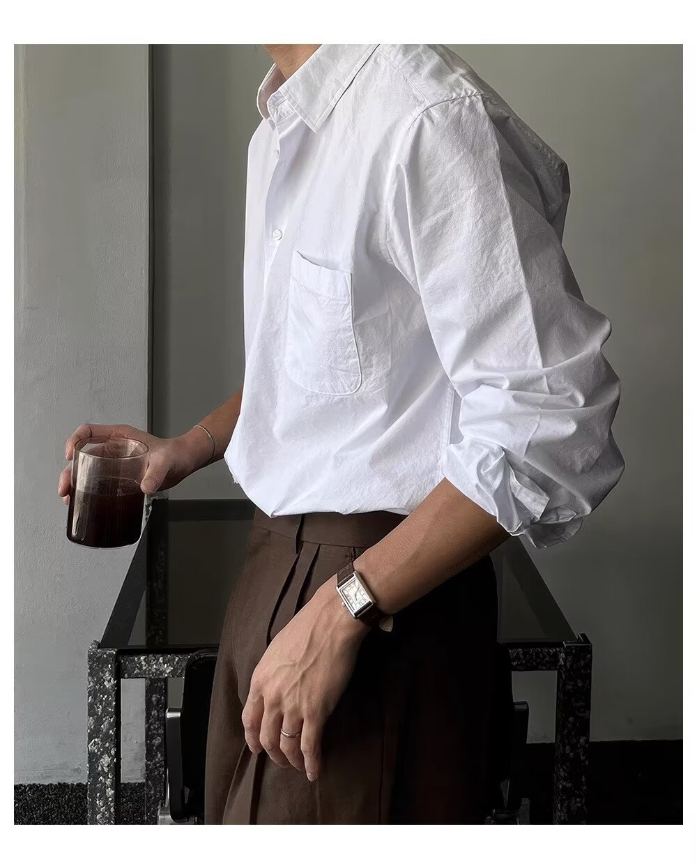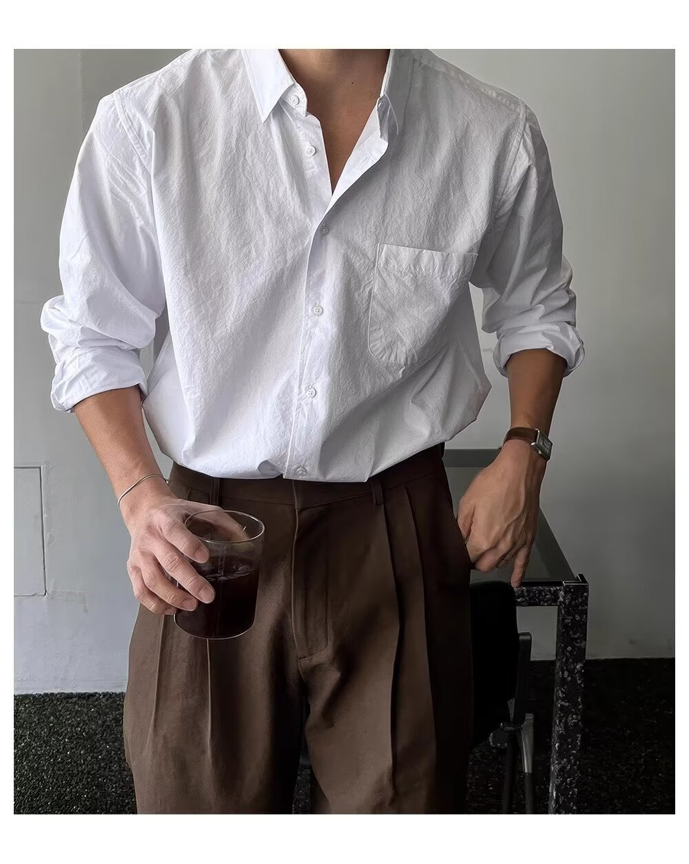 봄과 가을 최고 한국 느슨한 긴팔 셔츠 2024 남자 빛 럭셔리 주름 유행 캐주얼 올 매치 셔츠스토어 가기