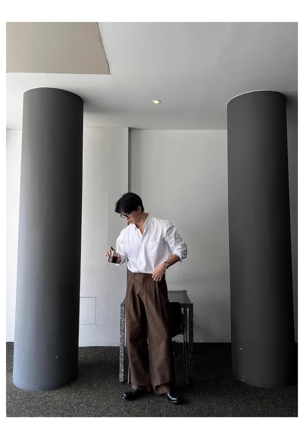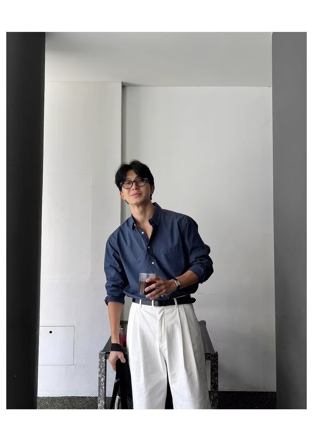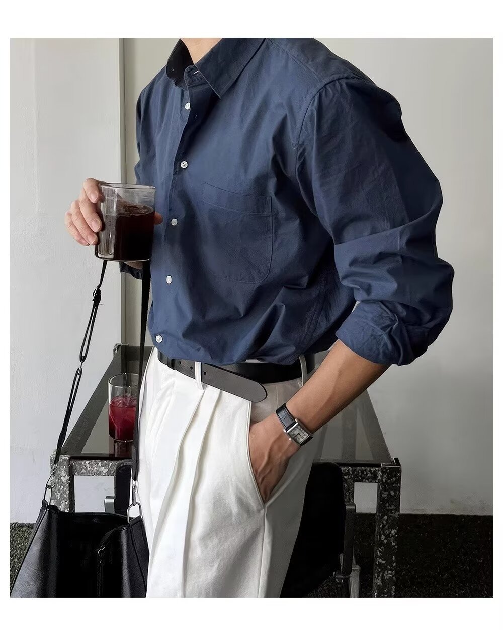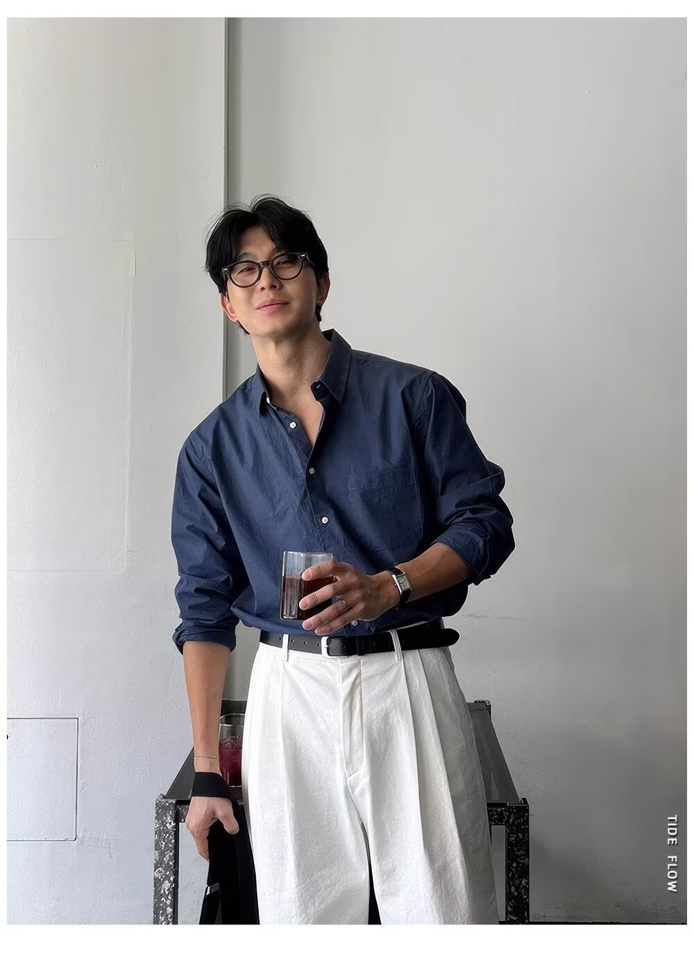 봄과 가을 최고 한국 느슨한 긴팔 셔츠 2024 남자 빛 럭셔리 주름 유행 캐주얼 올 매치 셔츠스토어 가기