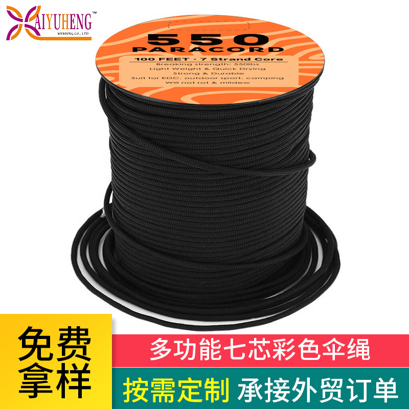국경 간 인기 판매 야외 다기능 손으로 짠 로프 550 파운드 7 코어 파라코드 미끄럼 방지 및 내마모성 폴리프로필렌 로프스토어 가기