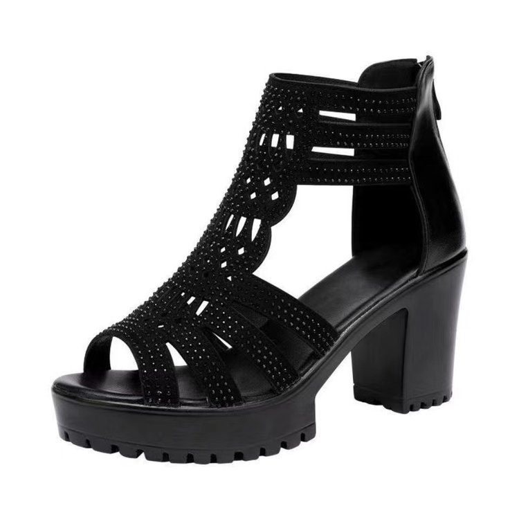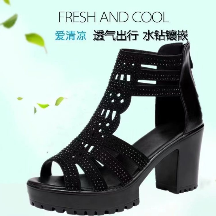 샌들 여성용 두꺼운 힐 2024 새로운 미끄럼 방지 피쉬 입 미드 하이 힐 로마 여성 신발 여성의 부드러운 밑창 열린 발가락 강화 샌들스토어 가기