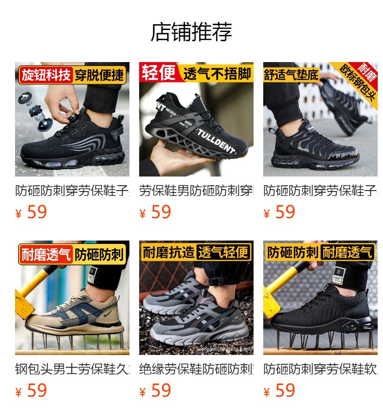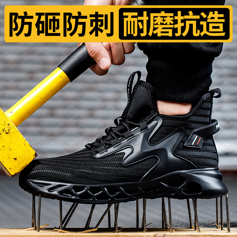 남성용 미끄럼 방지 작업화, 충격 방지 및 펑크 방지 기능성 신발, 사계절용, 방수, 통기성, 내마모성 안전화스토어 가기