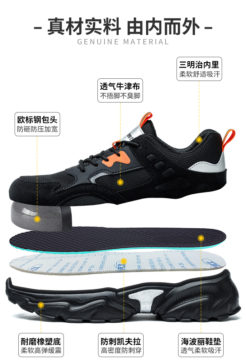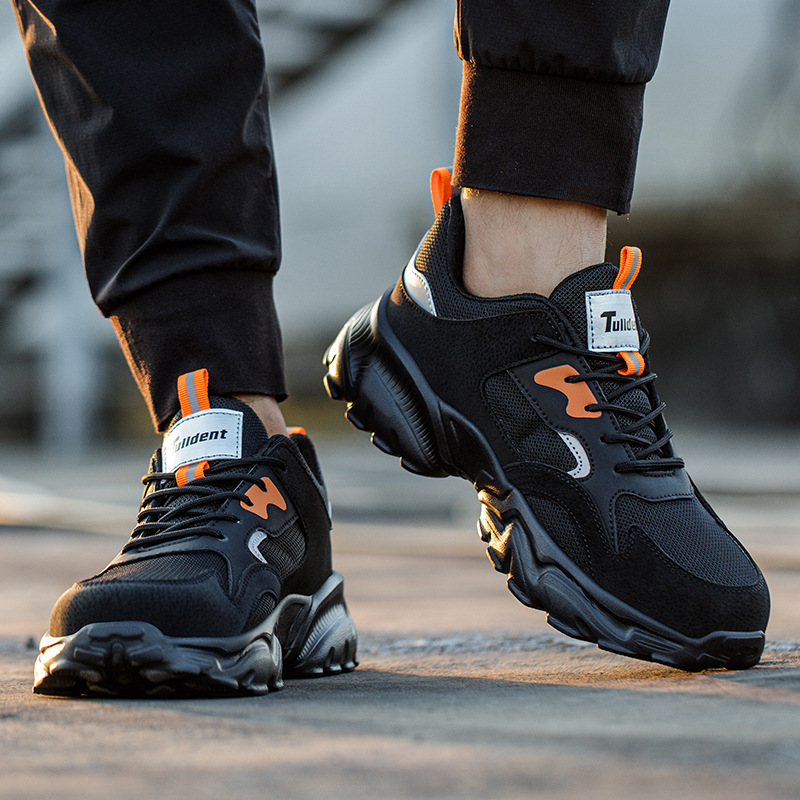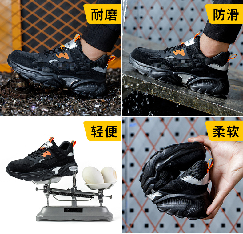 남성용 미끄럼 방지 작업화, 충격 방지 및 펑크 방지 기능성 신발, 사계절용, 방수, 통기성, 내마모성 안전화