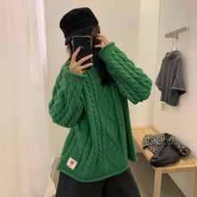 韩风圣诞复古森系绿色加厚圆领套头粗线麻花毛衣女慵懒宽松针织衫