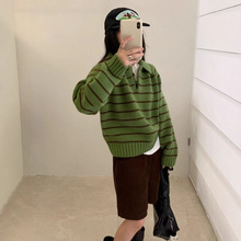 撞色条纹POLO领翻领半纽扣套头毛衣女秋冬宽松减龄长袖针织衫上衣