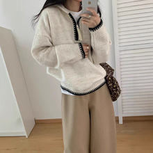 费尔岛2025秋冬新款复古慵懒风宽松百搭撞色休闲长袖针织毛衣女装