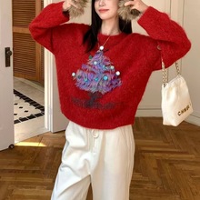 冬季新款慵懒高级感流苏圣诞树套头针织衫女时尚气质内搭保暖上衣