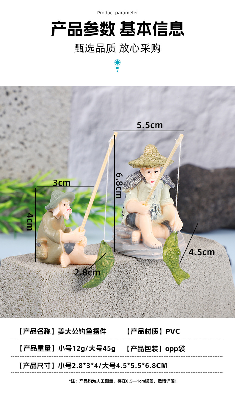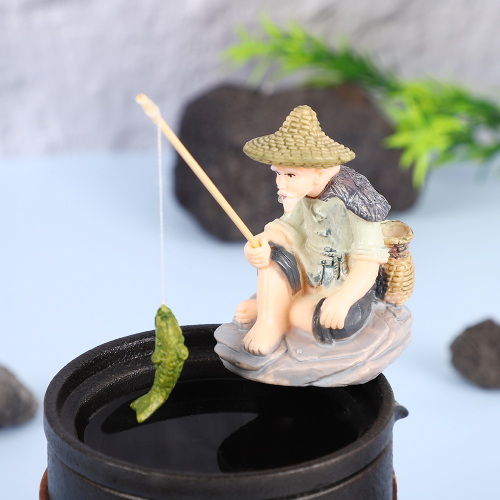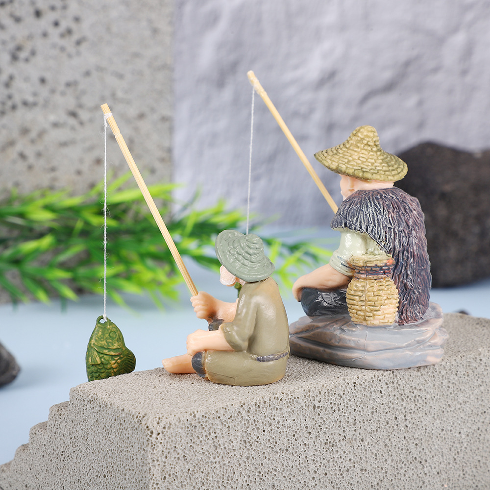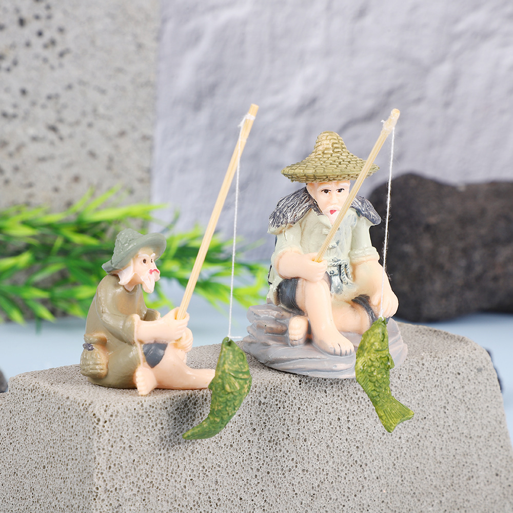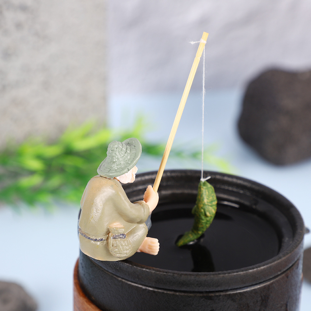 작은 물고기 탱크 조경 오래 된 어부 낚시 장타이 공 장식 꽃 냄비 원예 장식품 창조적 인 낚시 탱크 장식품스토어 가기