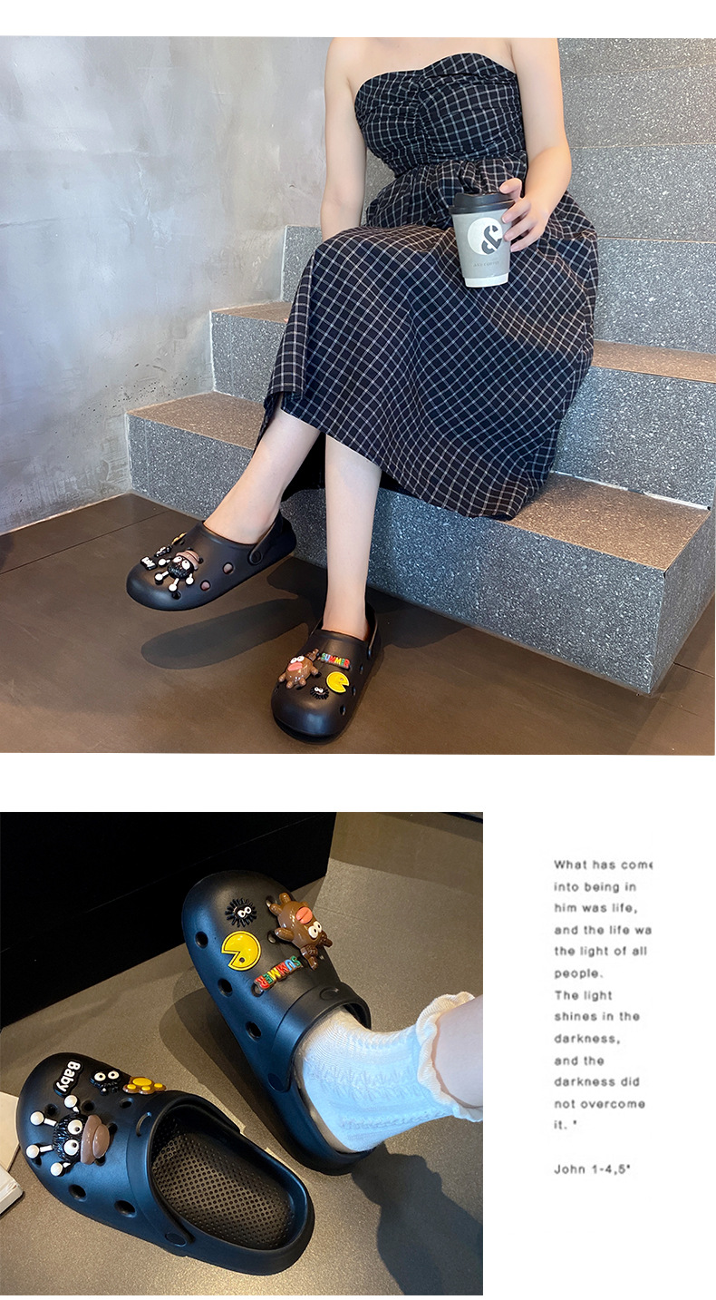 2026년 신상 여성용 통굽 샌들, 여름 커플용 두꺼운 밑창 미끄럼 방지, 똥 밟는 느낌의 해변용 앞코가 막힌 샌들, 남성용스토어 가기