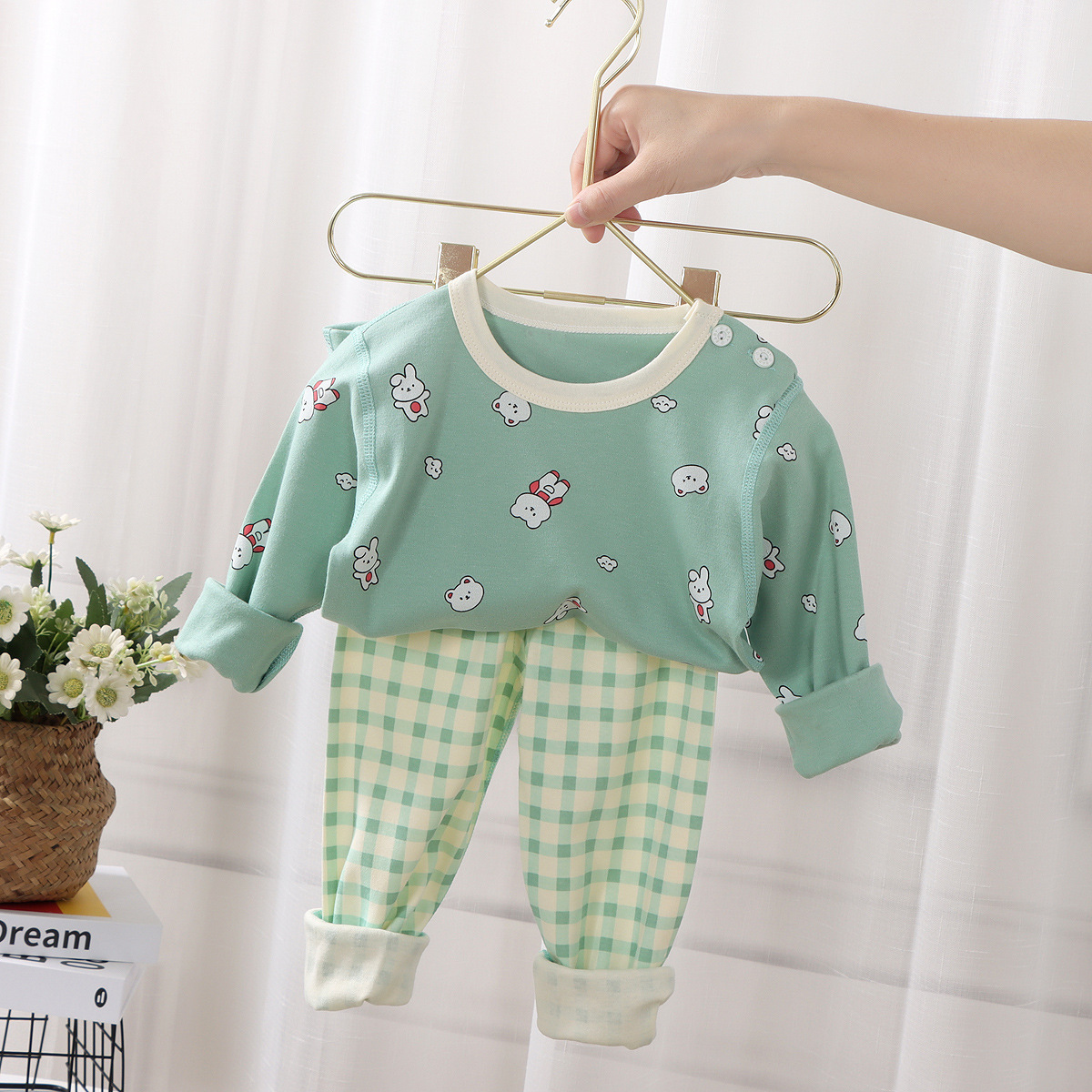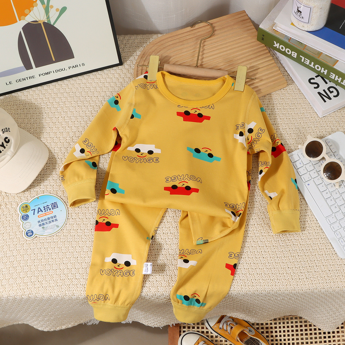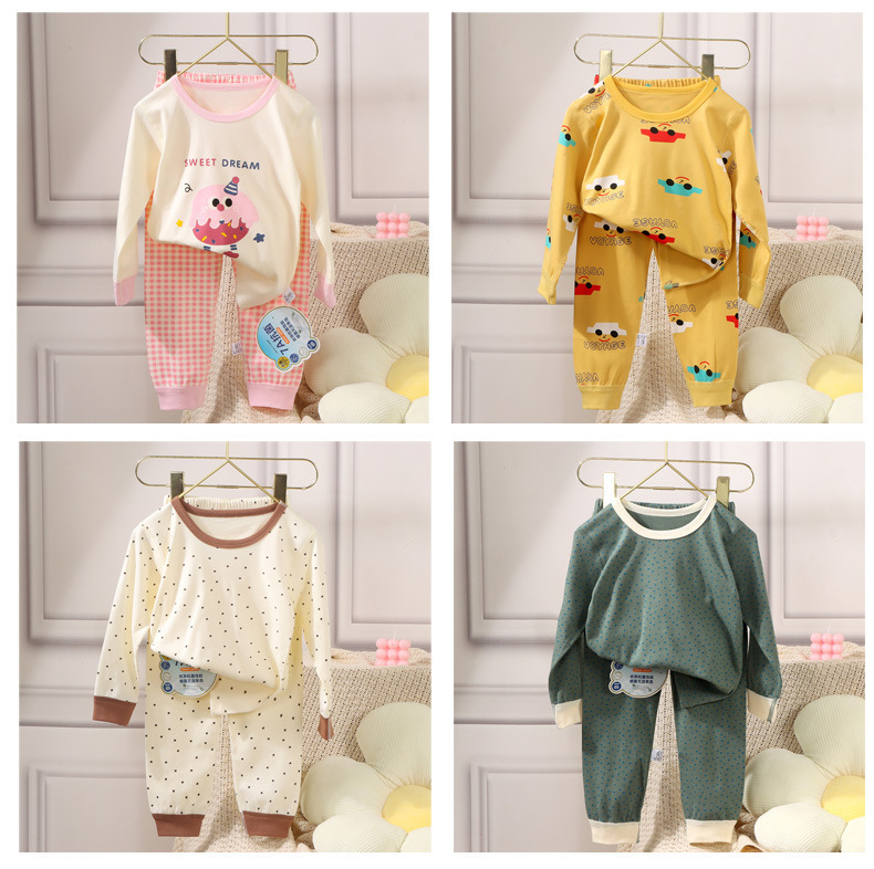 어린이 순면 옷 가을 옷 가을 바지 뼈없는 속옷 가을과 겨울 소년과 소녀 만화 한국 스타일 홈 옷 아기 잠자는 세트스토어 가기
