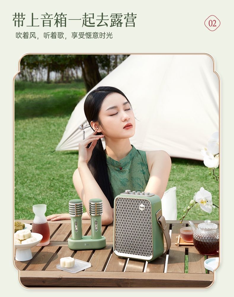 디보롬 포인트 사운드 스피커 오리엔탈 칭루안 듀얼 마이크 노래방 블루투스 스피커 캠핑용 노래방 블루투스 5.2