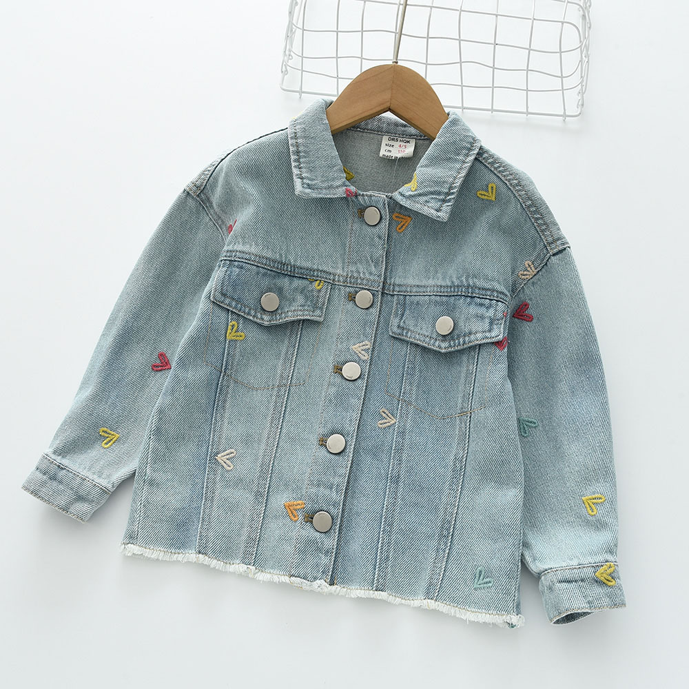 2024秋季新款 爱心刺绣 女童水洗翻领牛仔上衣外套