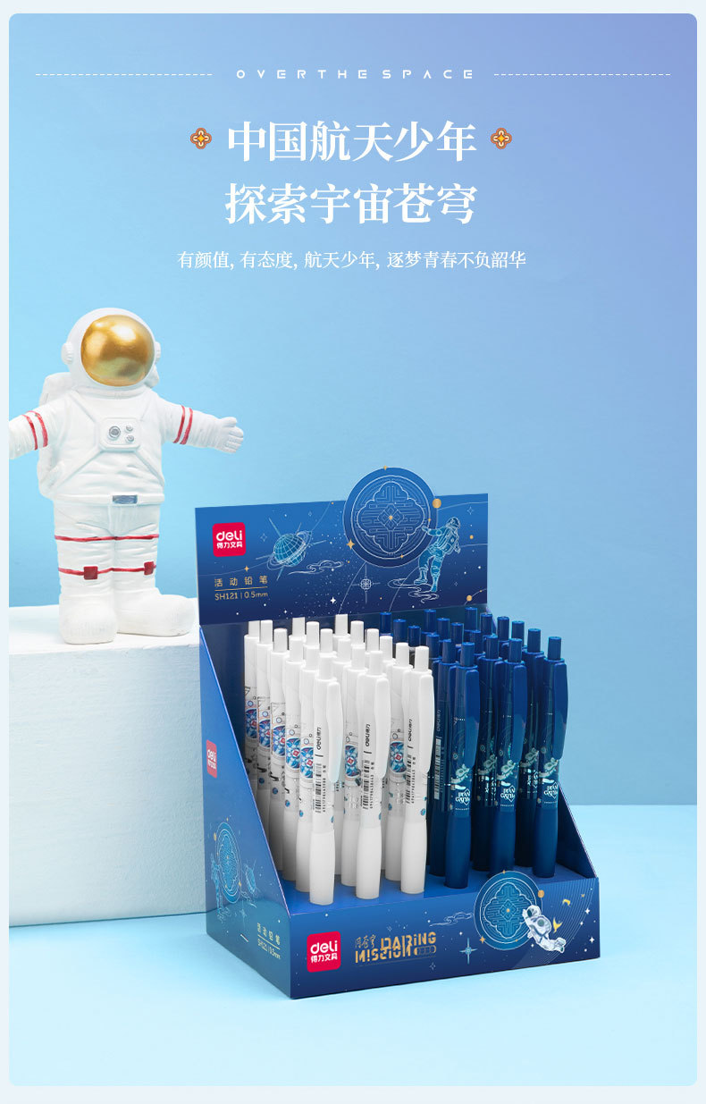 델리 자동 펜 0.5 자동 연필 연속 코어 높은 색상 가치 문구 상자 도매 언론 활동 연필 0.7스토어 가기