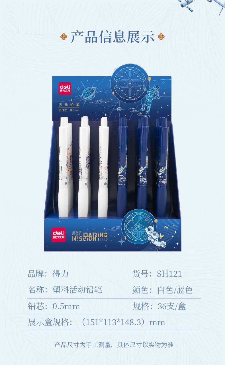 델리 자동 펜 0.5 자동 연필 연속 코어 높은 색상 가치 문구 상자 도매 언론 활동 연필 0.7