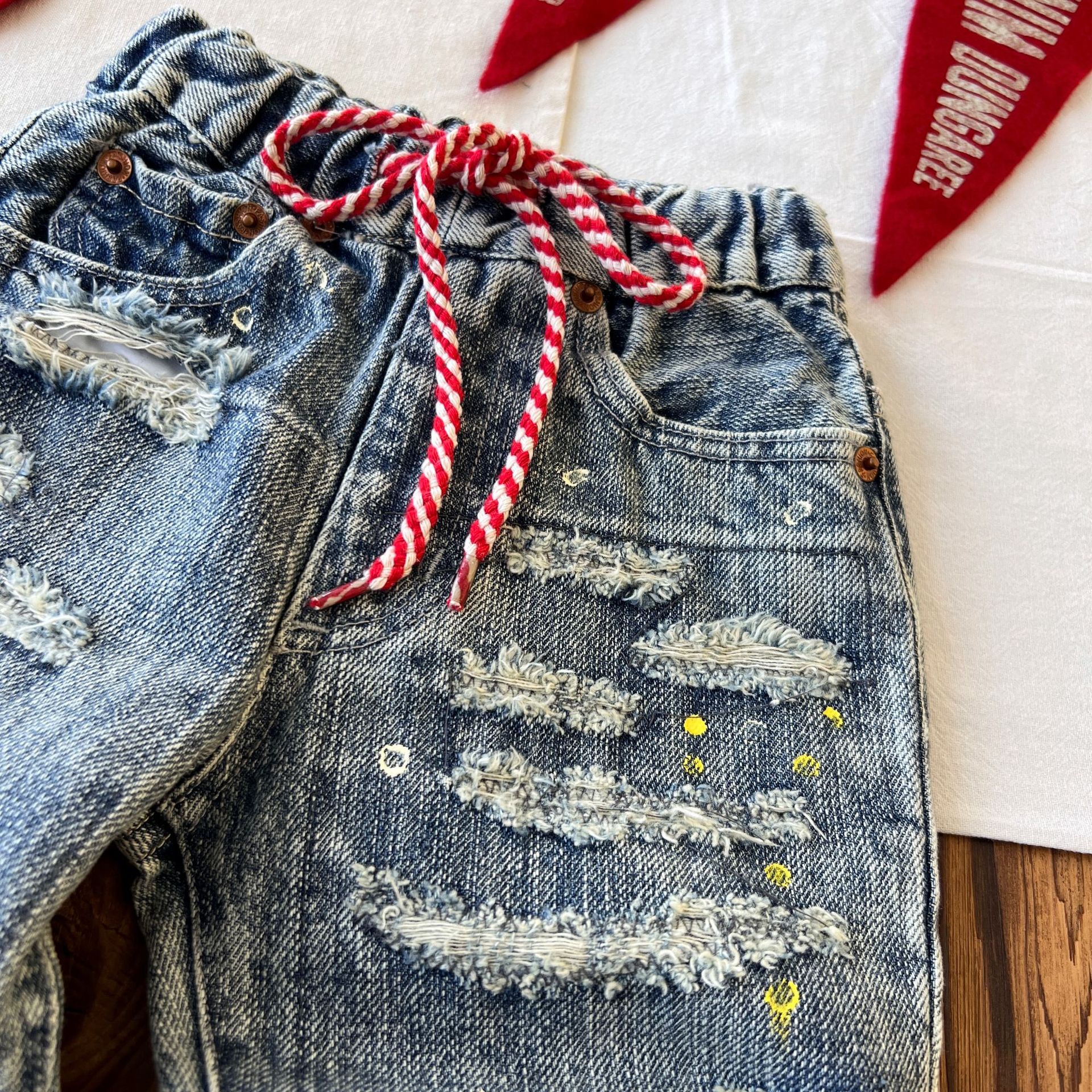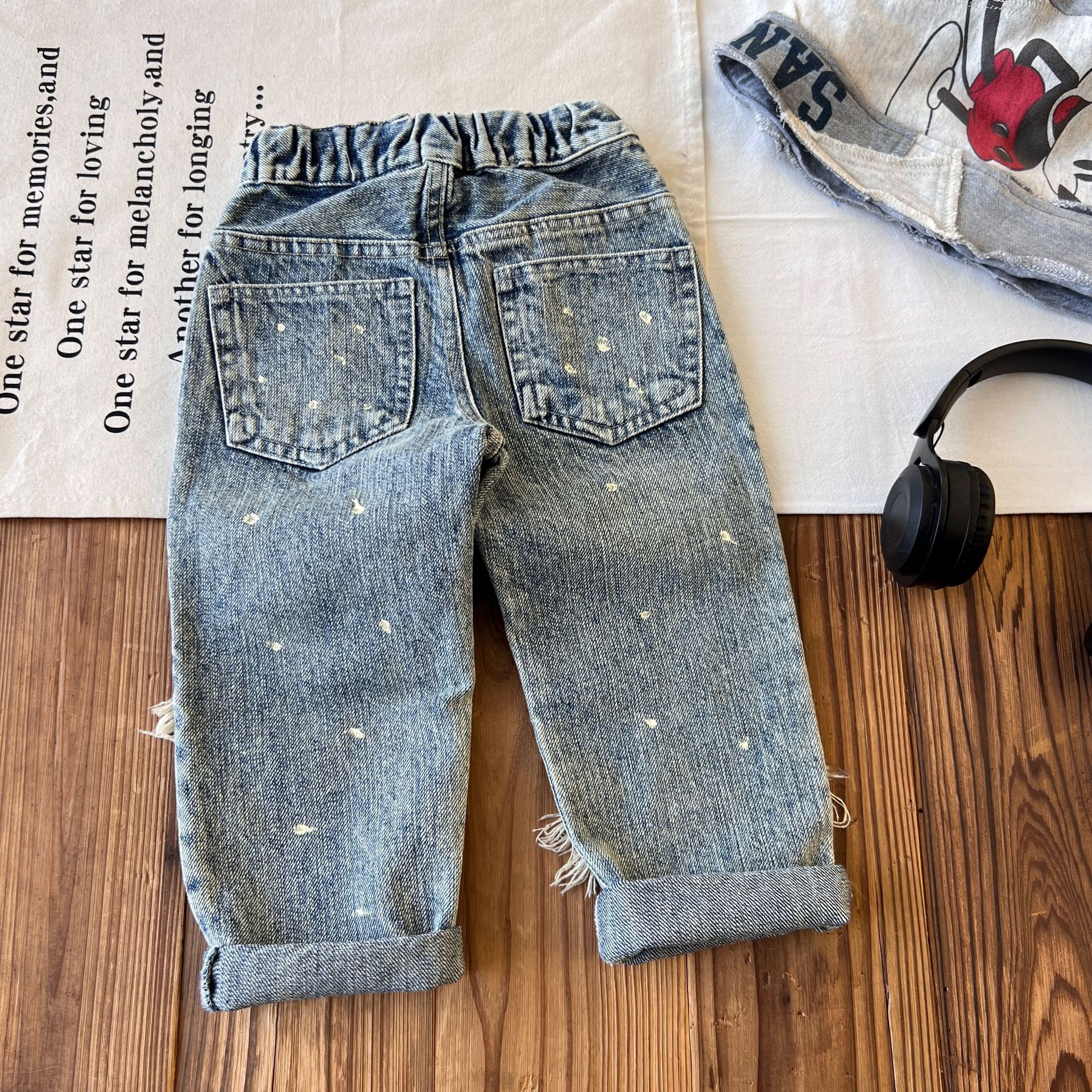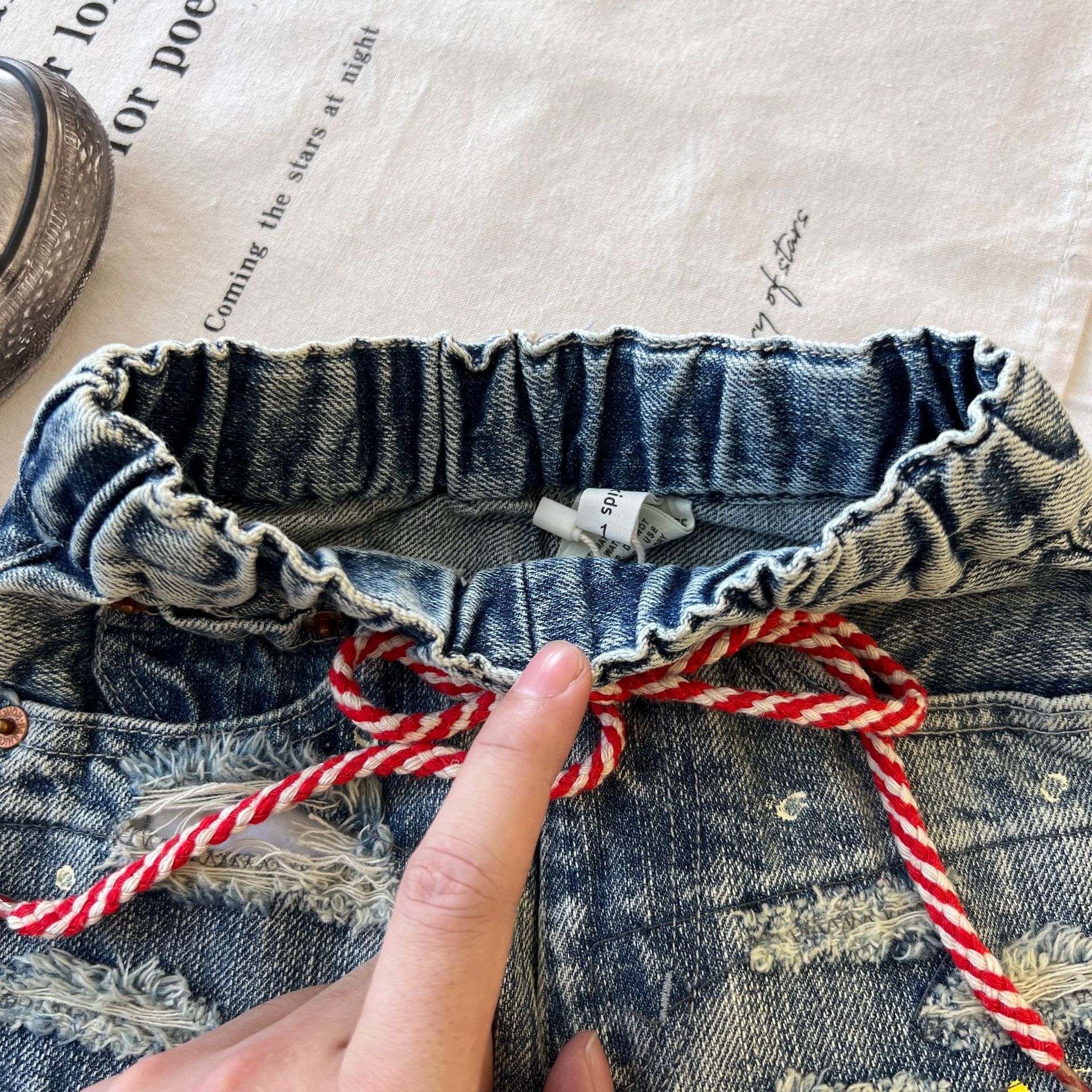 2024 일본 어린이 착용 중 고대 유행 브랜드 DD 어린이 오래된 찢어진 청바지