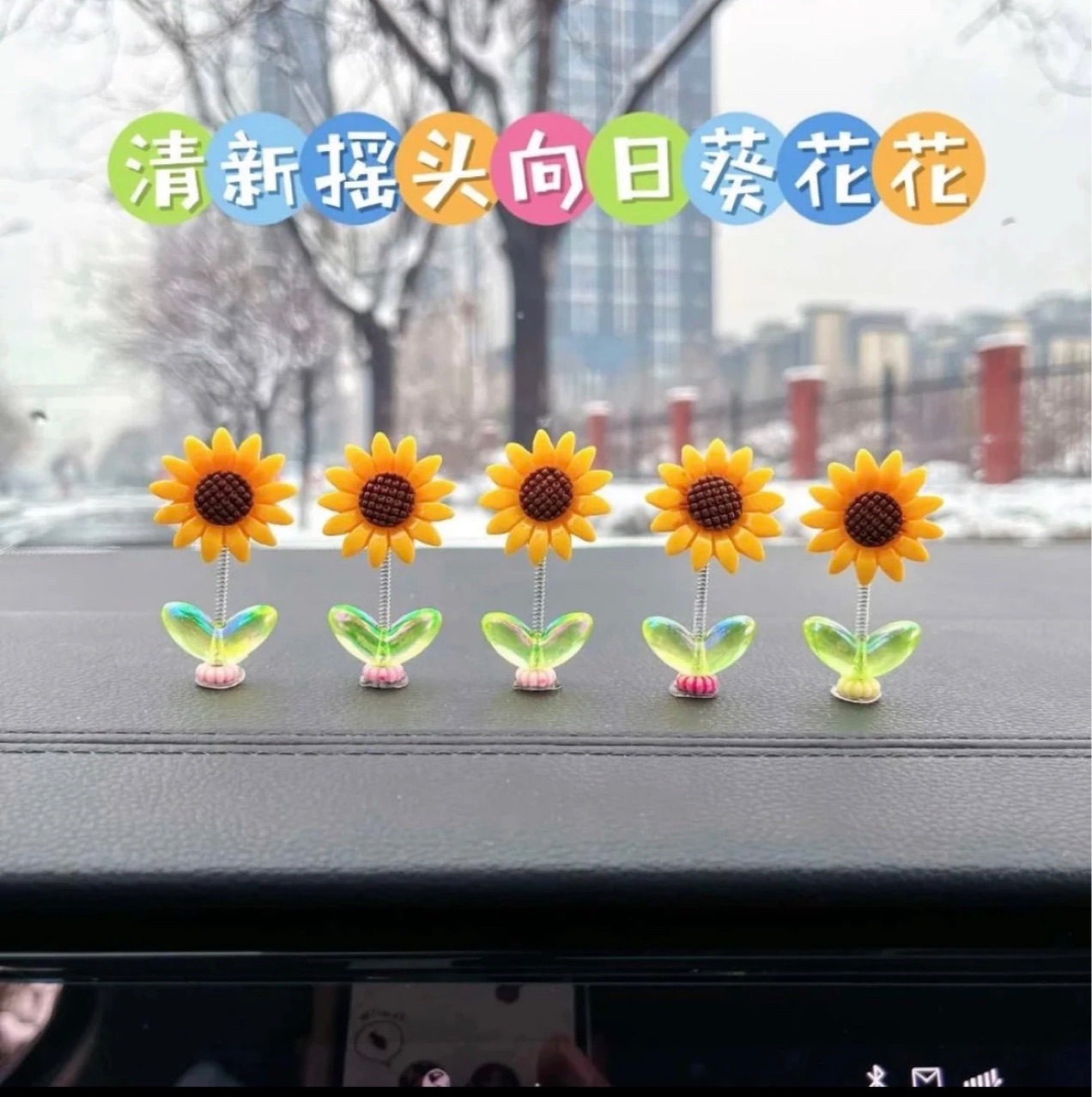 인터넷 축하 귀여운 쉐이크 헤드 해바라기 자동차 장식품 치료 신선한 꽃 자동차 중앙 콘솔 백미러 장식스토어 가기