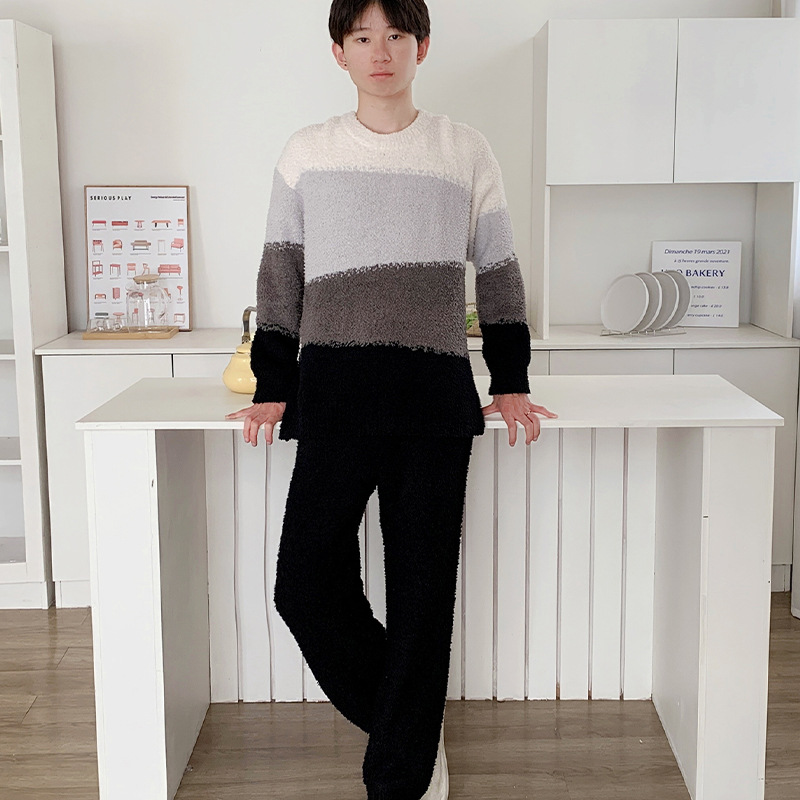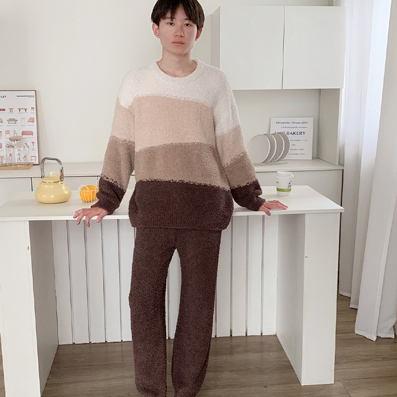 가을 겨울 새로운 남성 잠옷 기모 두꺼운 부드러운 홈 옷 연인 잠옷 세트스토어 가기