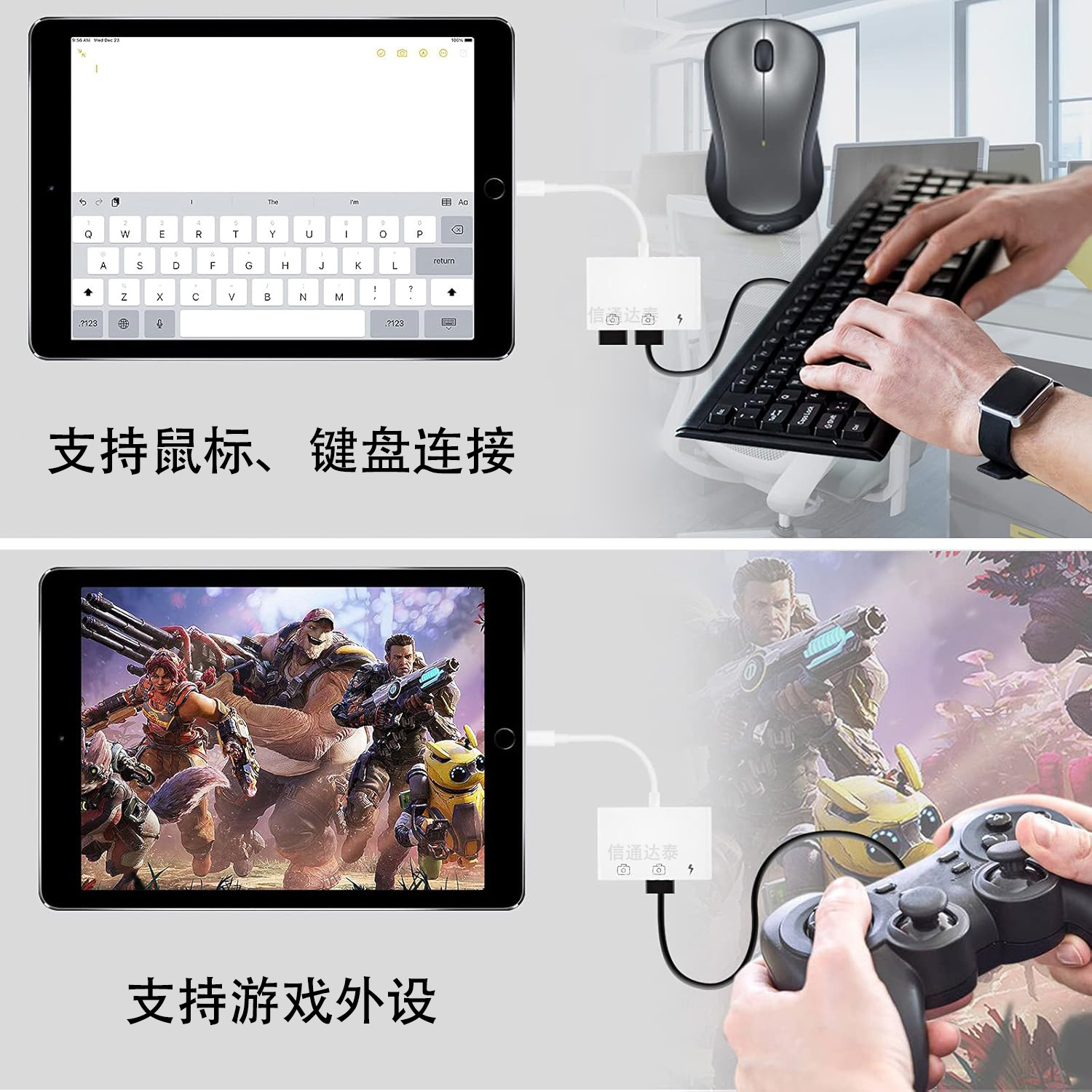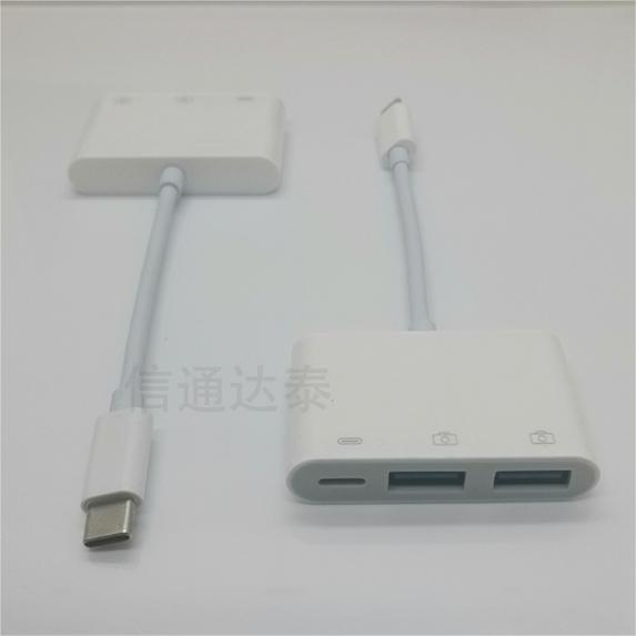 듀얼 USB 어댑터에 3 대 1 조명 충전 데이터 전송 유형-c 듀얼 USB 어댑터