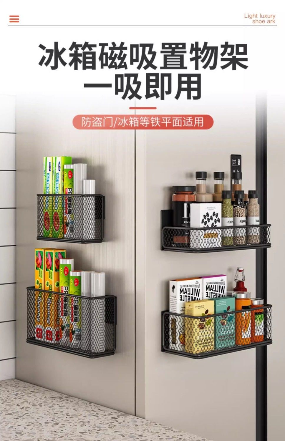 주방 냉장고 자기 흡수 저장 랙 도어 후면 우산 저장 랙 펀치 프리 보존 필름 조정 가능한 병 보관 바구니스토어 가기
