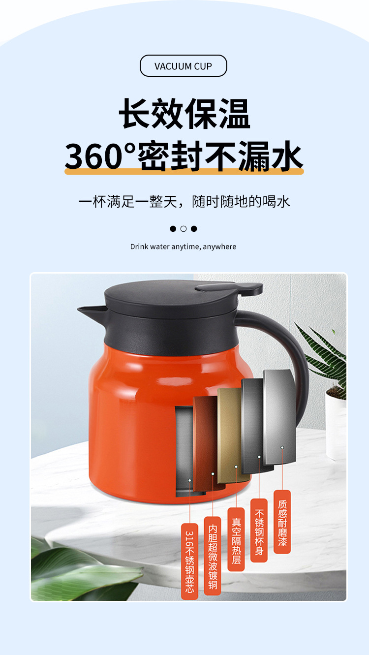 316 스테인레스 스틸 조림 주전자 가정용 차 물 분리 및 열 보존 냄비 대용량 사무실 휴대용 열 보존 주전자스토어 가기