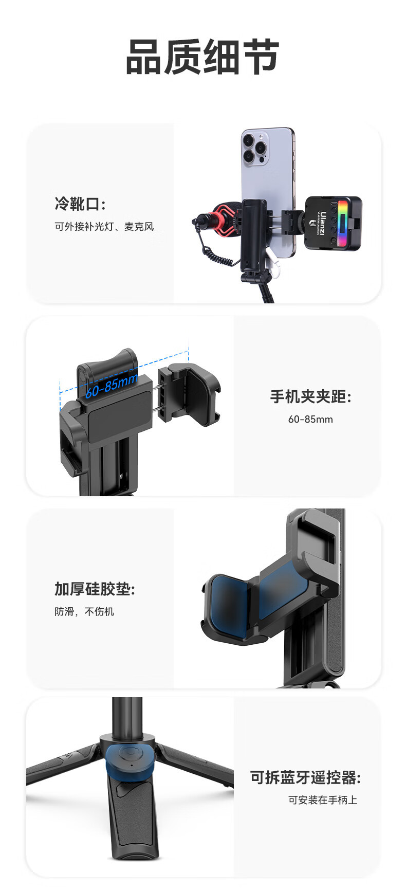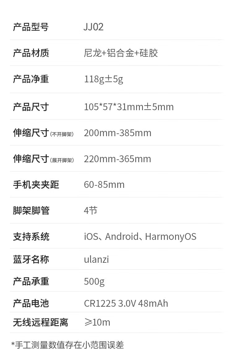 Ulanzi Ulanzi JJ02 신축성 있는 블루투스 핸들 삼각대 촬영 보조 장치 휴대용 휴대폰 셀프