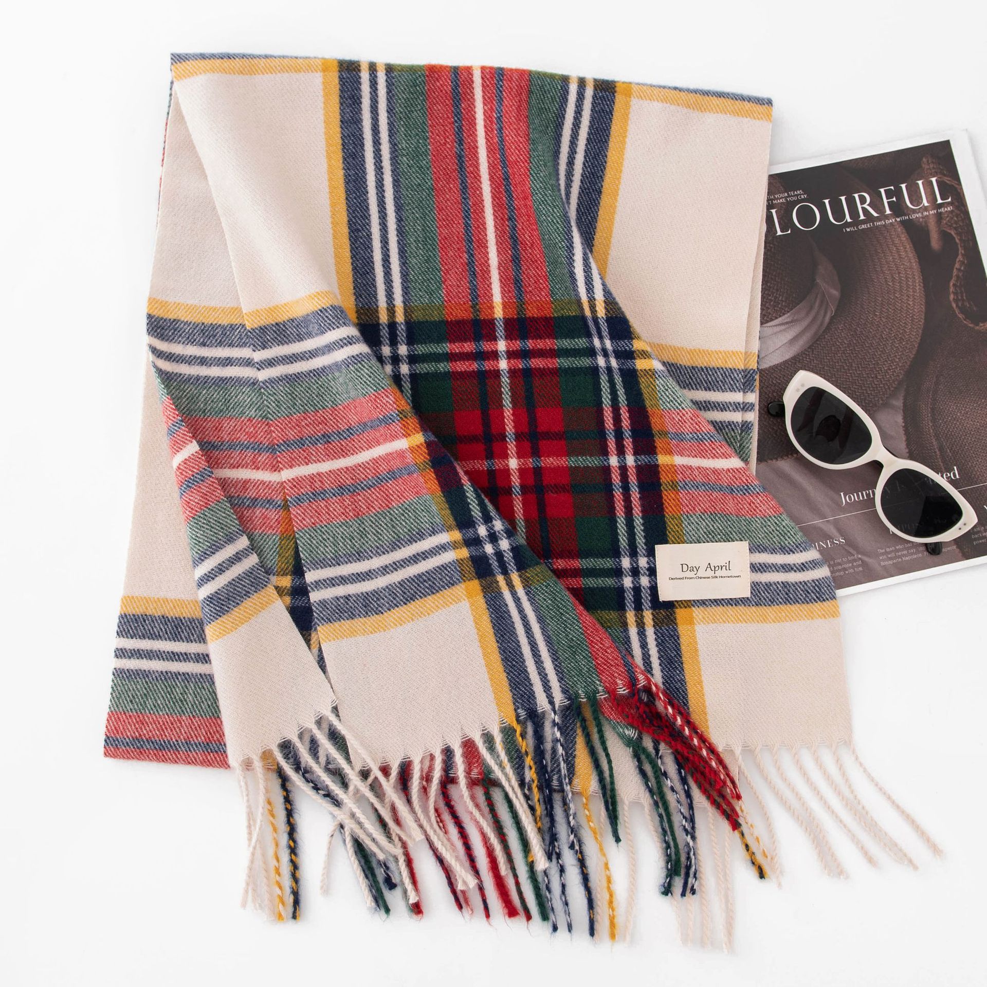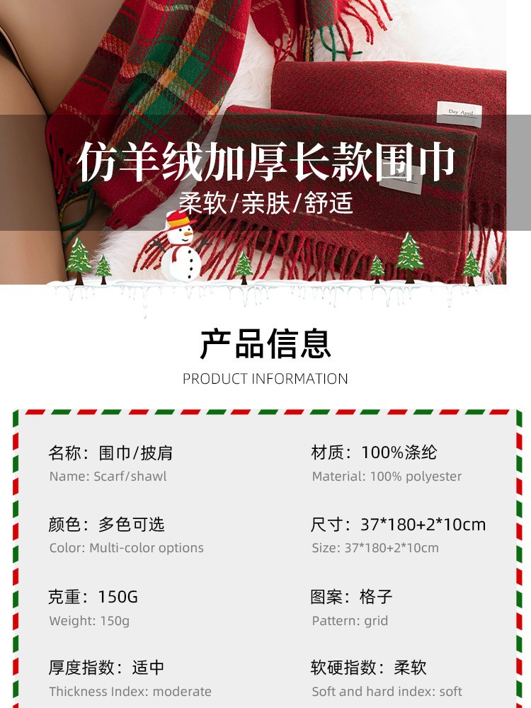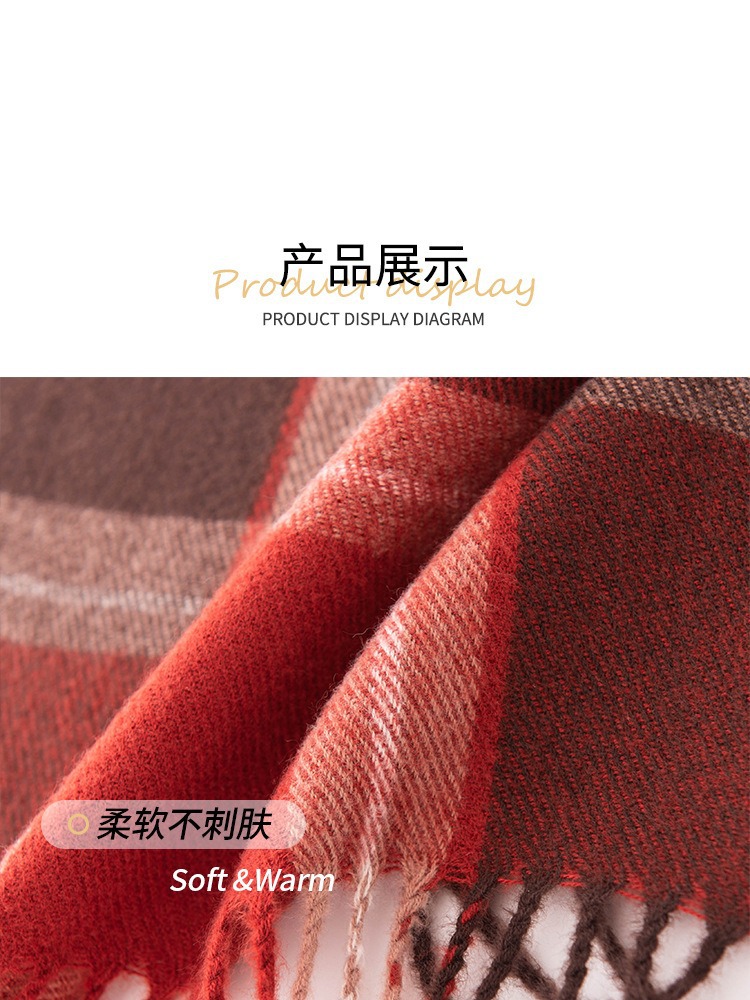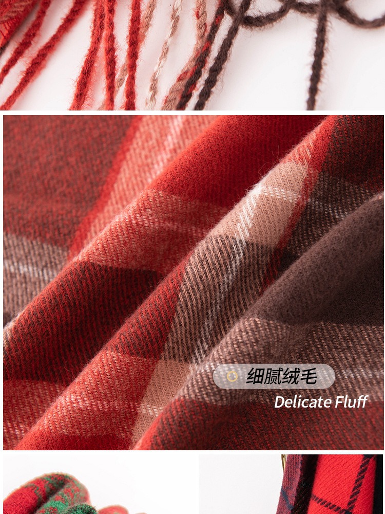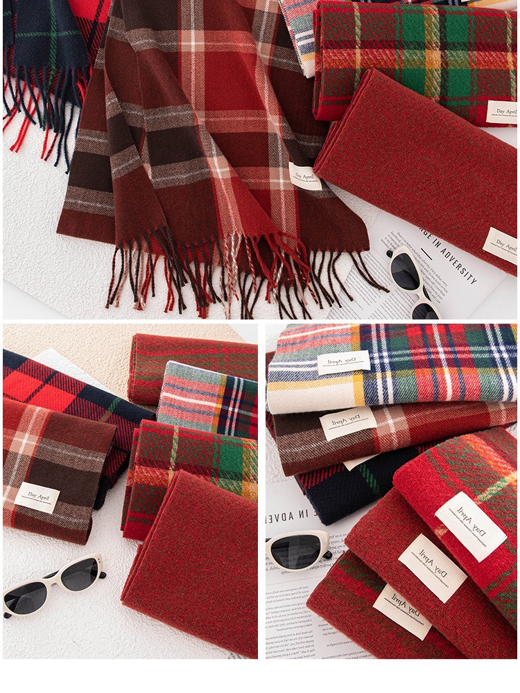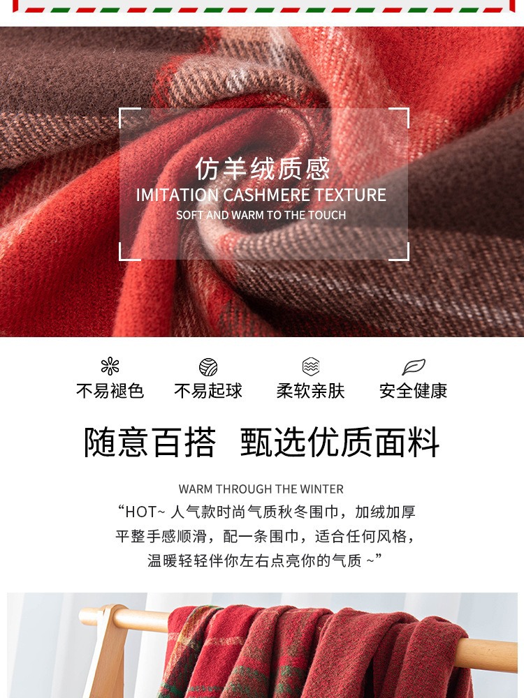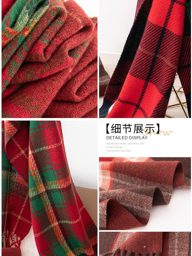 가을 겨울 레드 신년 체크 스카프 여성용 고급스러운 느낌의 모조 캐시미어 겨울 따뜻한 숄 스카프 도매스토어 가기