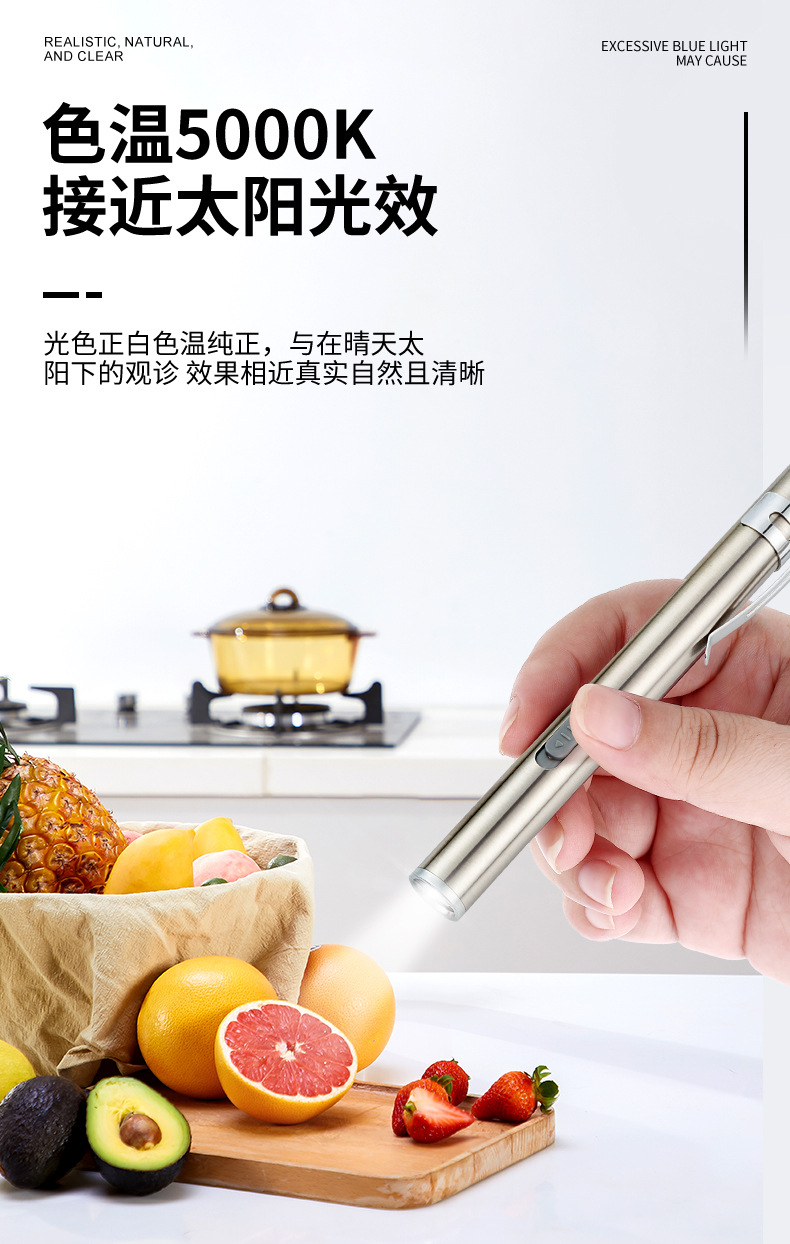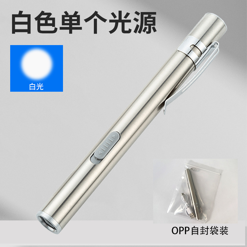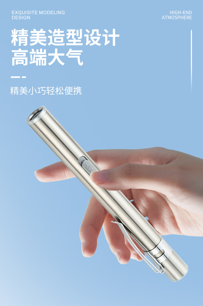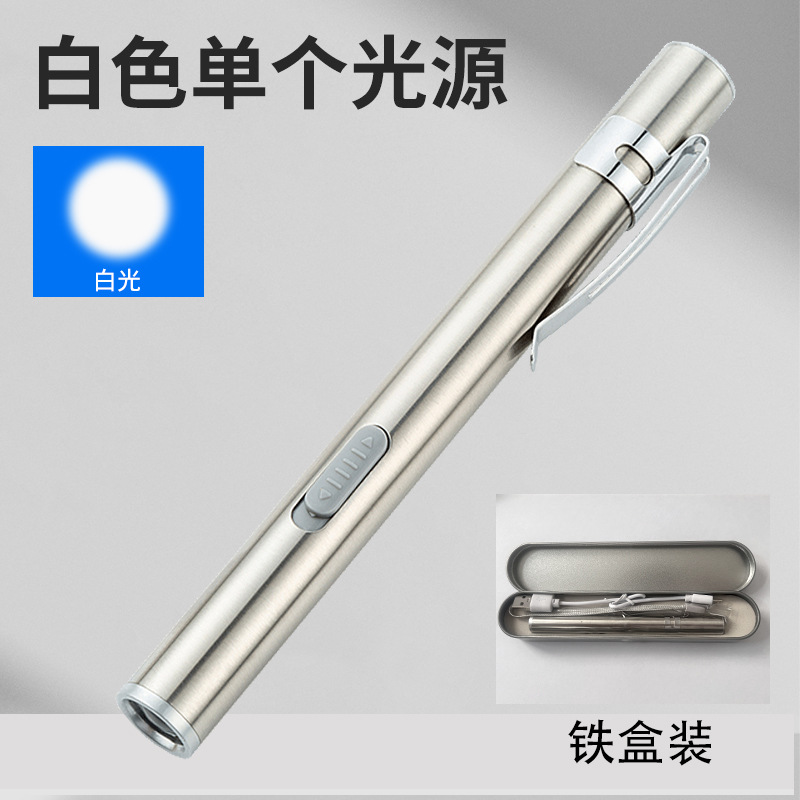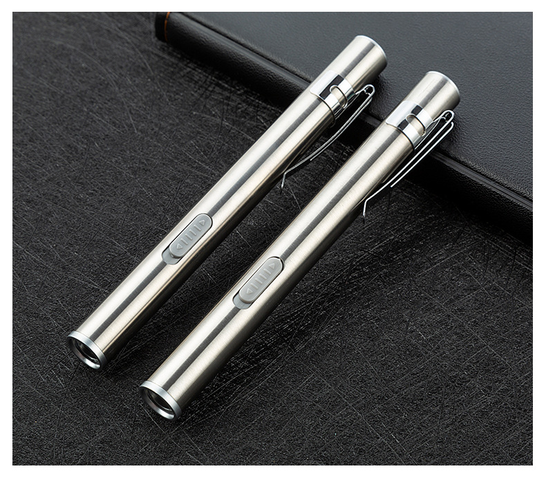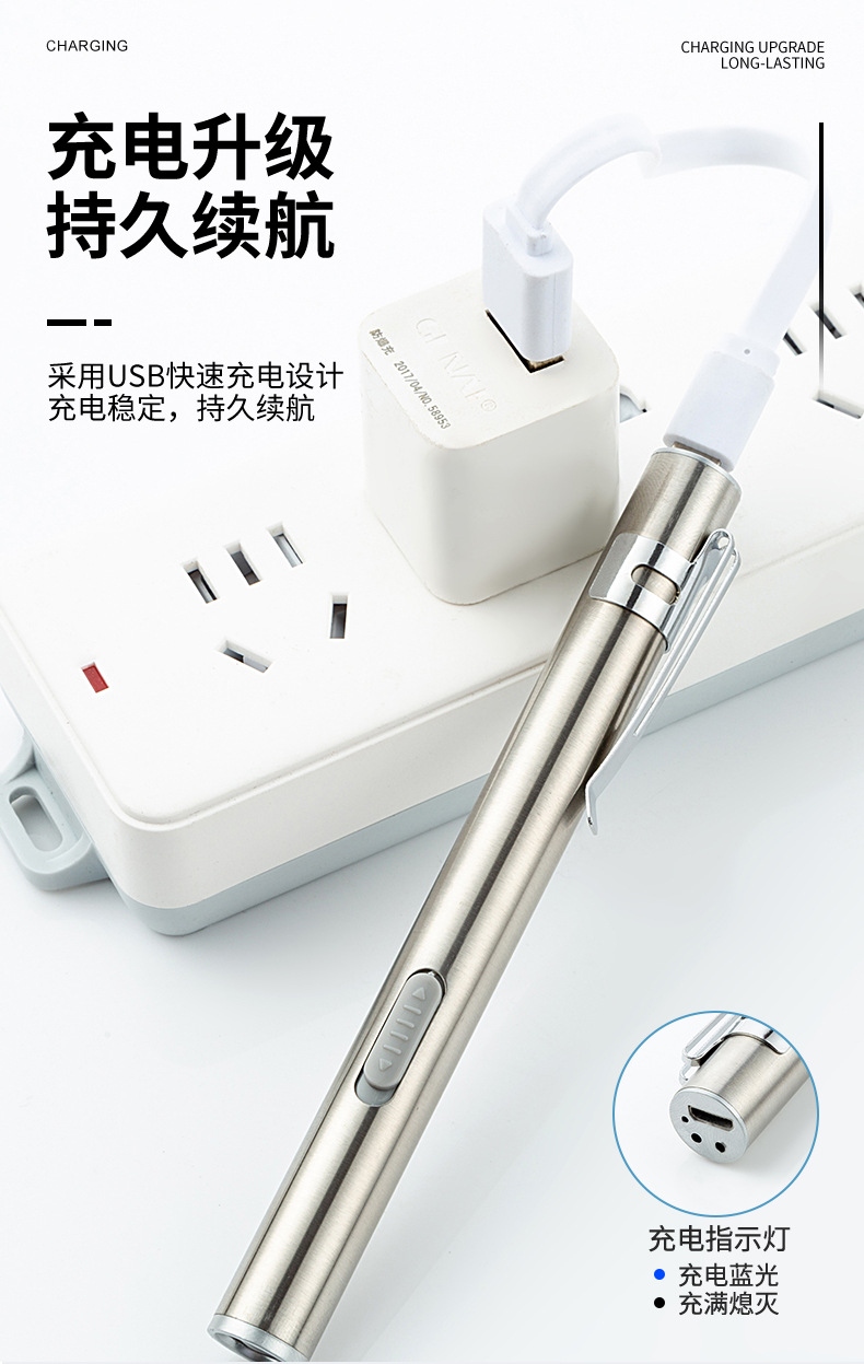 야외 led 미니 손전등 충전식 휴대용 긴 지구력 손전등 스테인레스 스틸 강한 빛 슈퍼 밝은 충전 작은 손전등