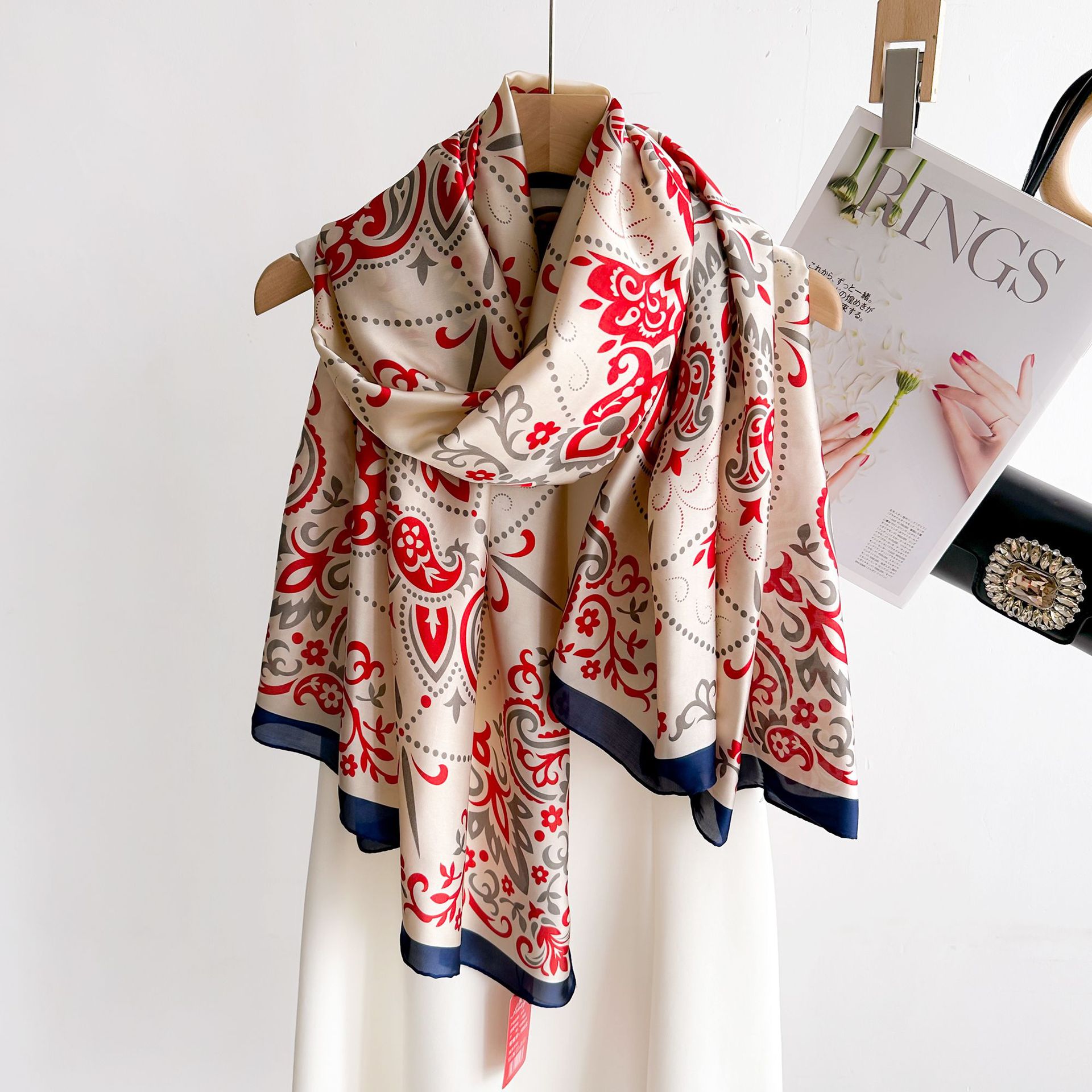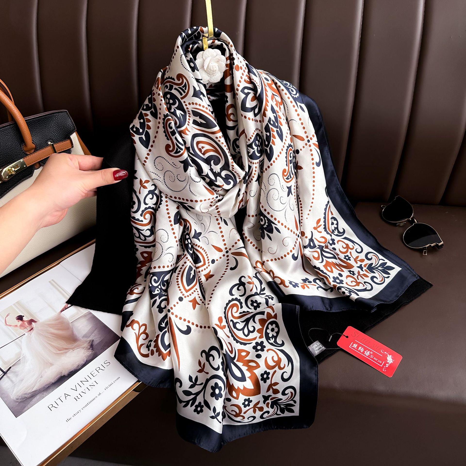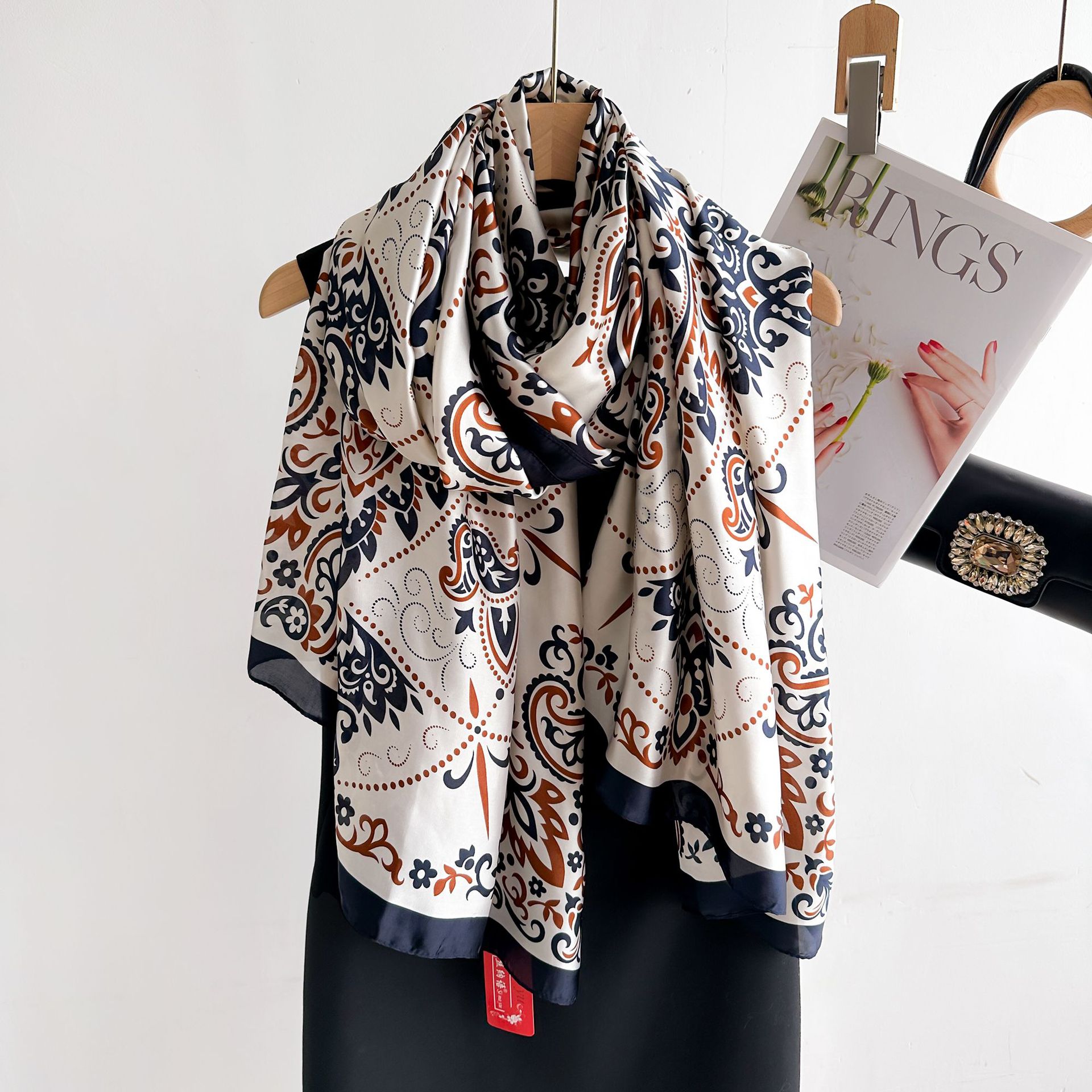 공장 직매 모조 실크 뽕나무 실크 스카프, 인기 인쇄 롱 스카프, 여름용 얇은 자외선 차단 숄