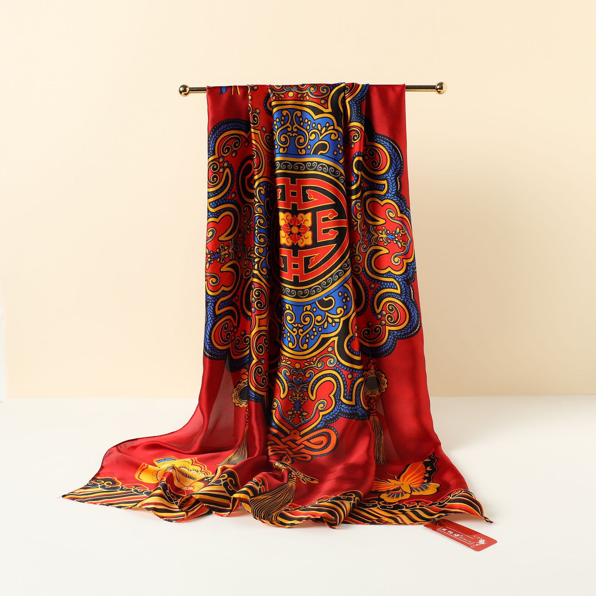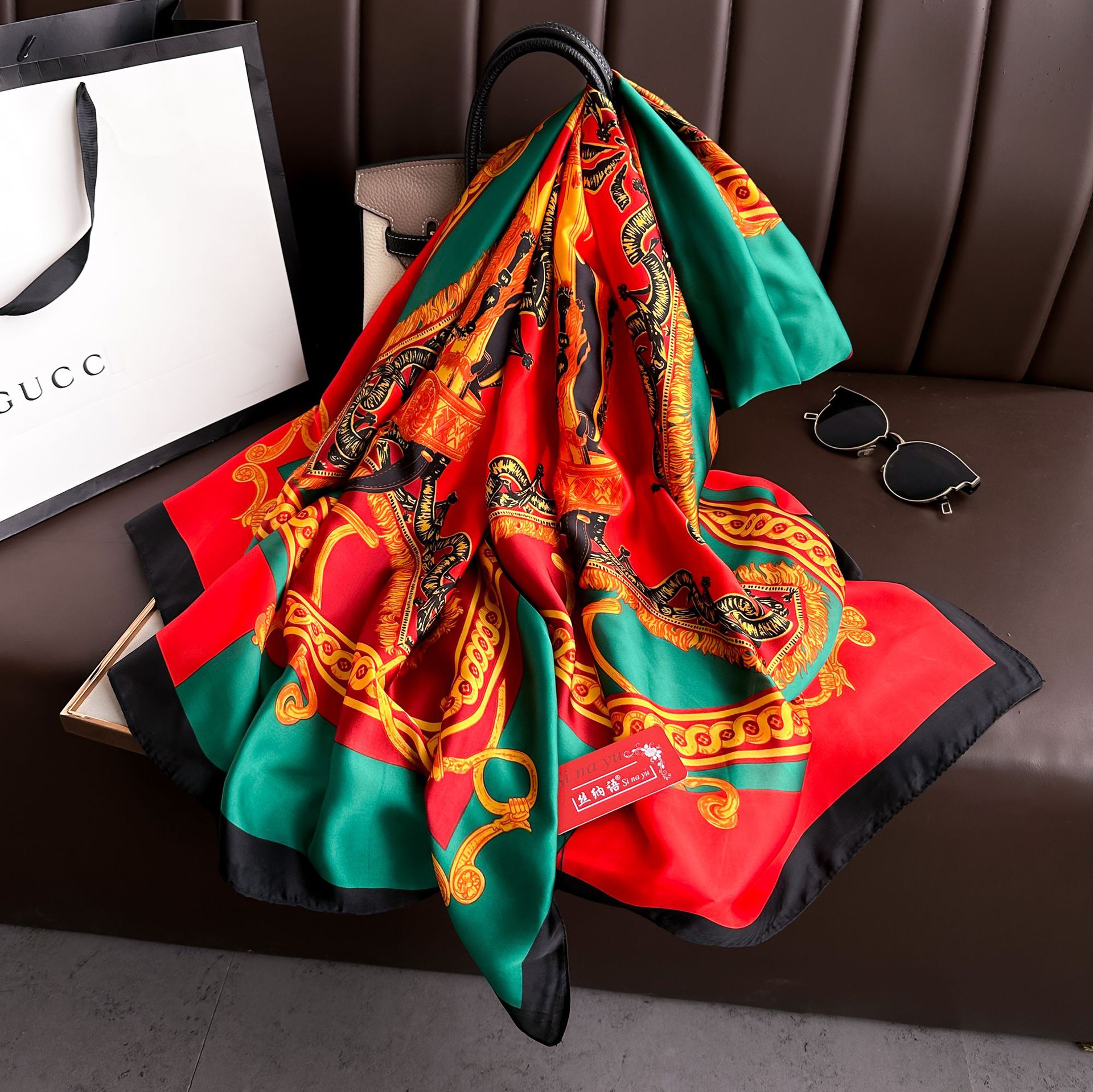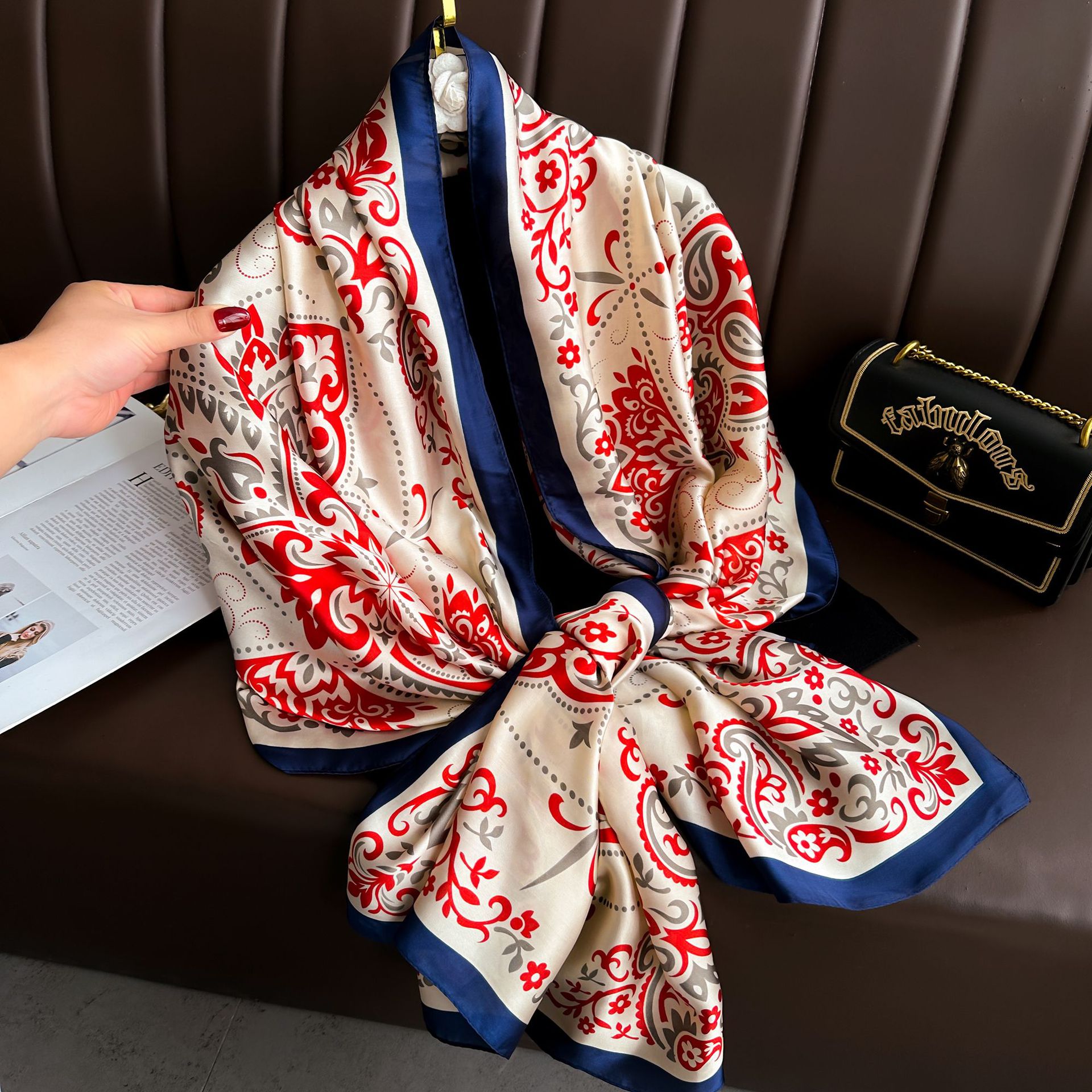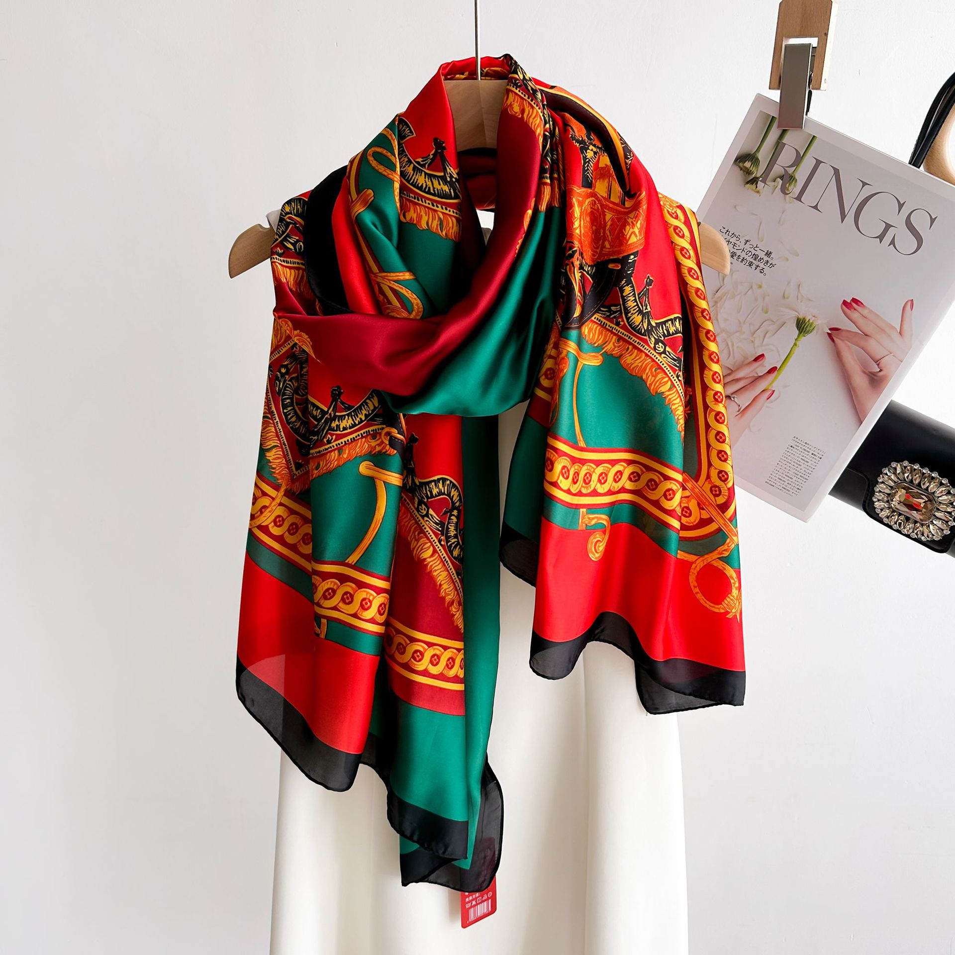 공장 직매 모조 실크 뽕나무 실크 스카프, 인기 인쇄 롱 스카프, 여름용 얇은 자외선 차단 숄